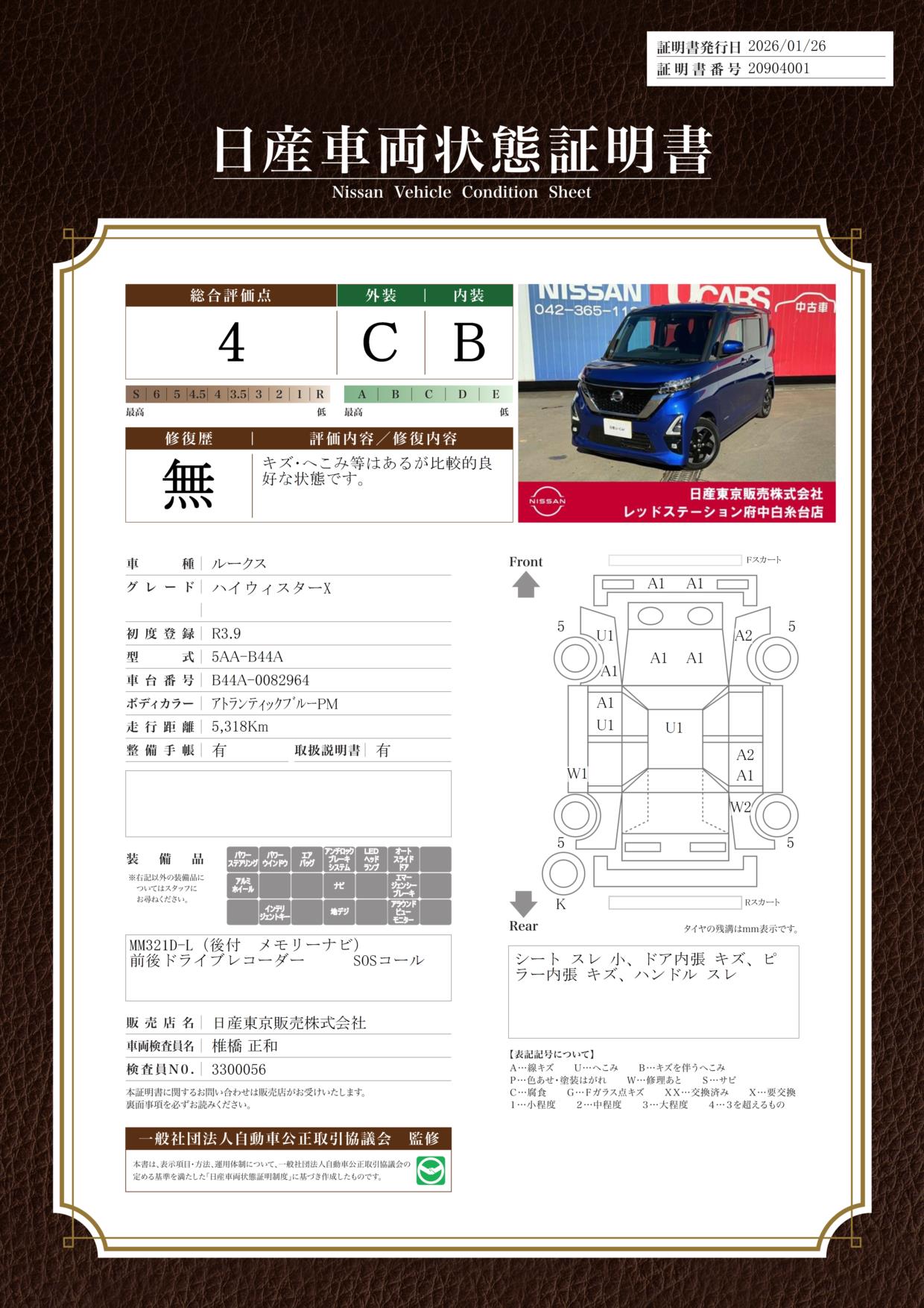 現状車検切れの状態ですが、ご成約時に新しく車検を実施します。車検費用は車両価格に含まれています。