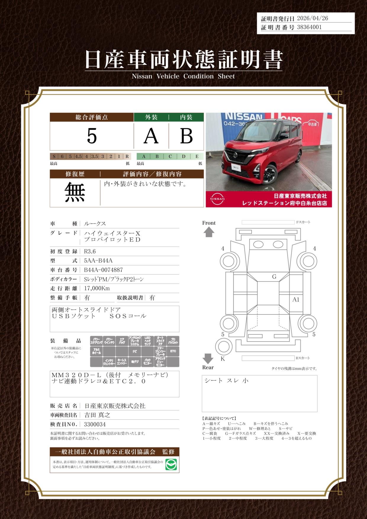 現状車検切れの状態ですが、ご成約時に新しく車検を実施します。車検費用は車両価格に含まれています。