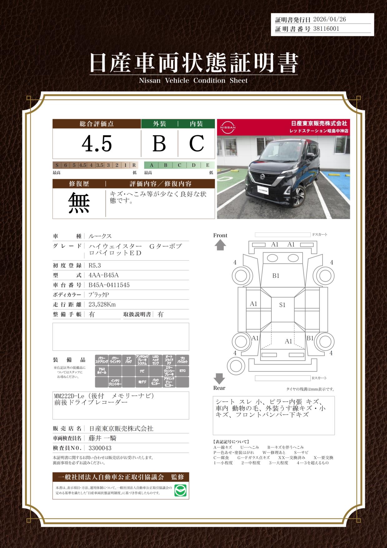 「車両状態証明書」は、査定協会監修のプロの検査員が公正かつ確かな基準で検査した”安心の証”です。