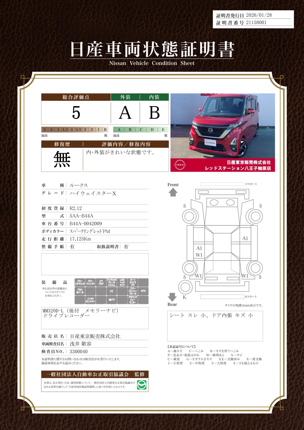 現状車検切れの状態ですが、ご成約時に新しく車検を実施します。車検費用は車両価格に含まれています。