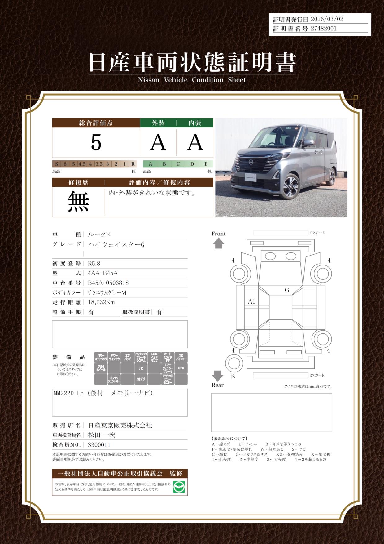 「車両状態証明書」は、査定協会監修のプロの検査員が公正かつ確かな基準で検査した”安心の証”です。