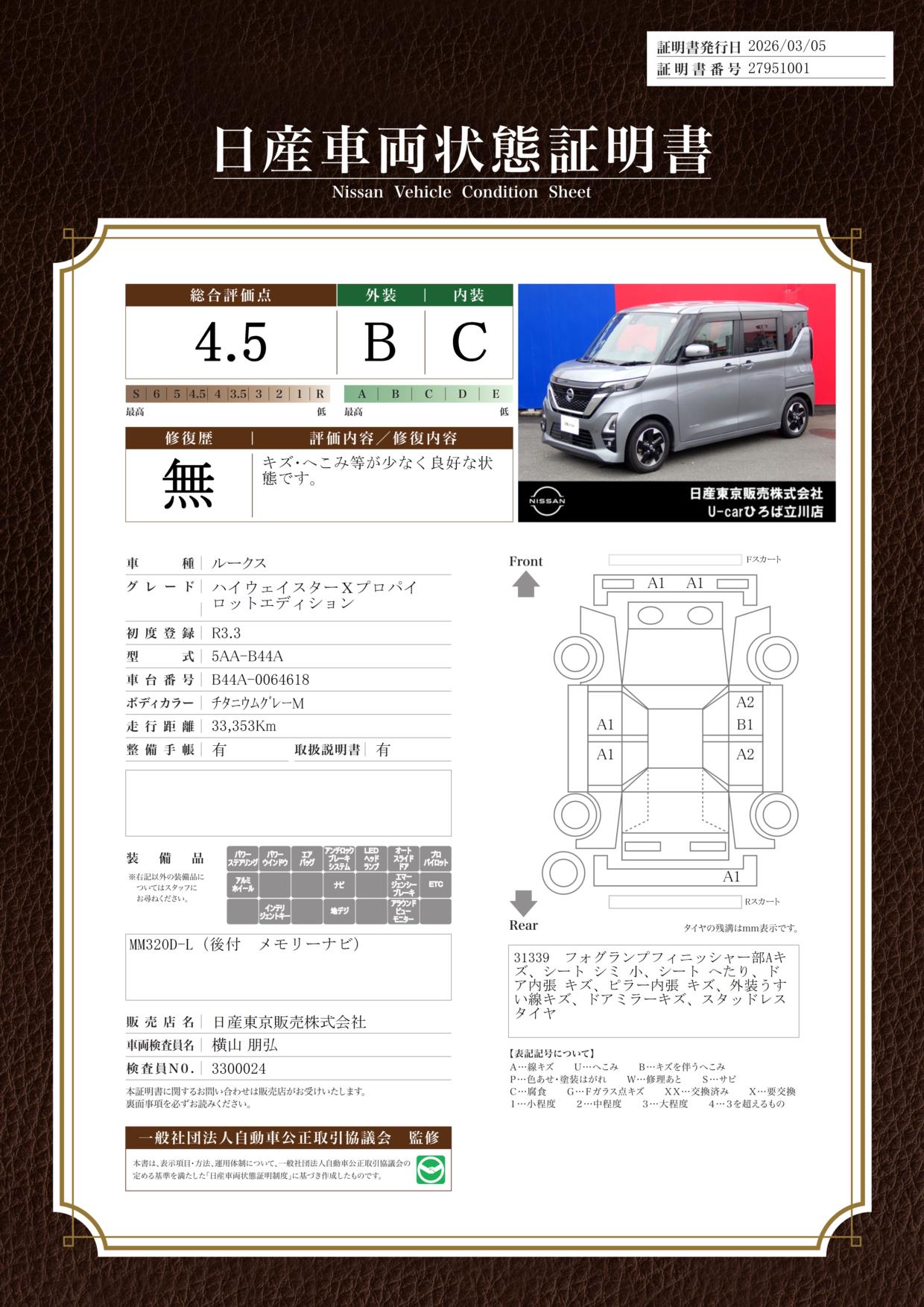 日産車両状態証明