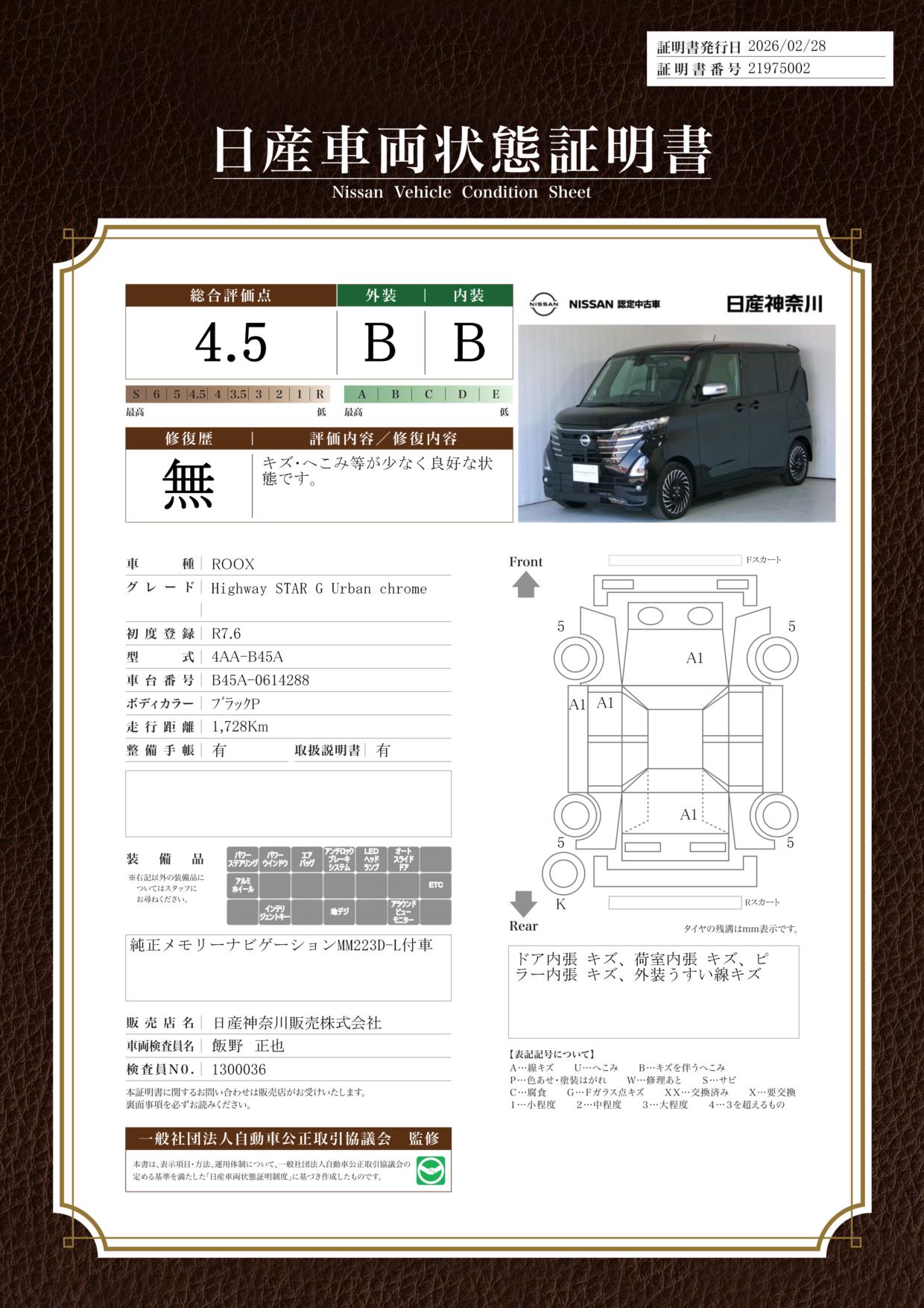 「車両状態証明書」は、査定協会監修のプロの検査員が公正かつ確かな基準で検査した”安心の証”です。
