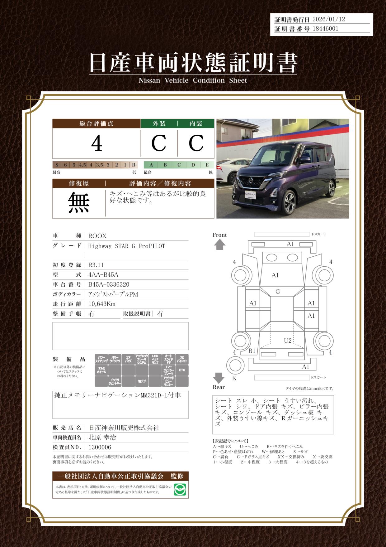 現状括弧書き内の年月まで車検有効期限が残っていますが、ご成約時に新しく車検を取り直します。なお取り直しの費用は車両価格に含まれています。