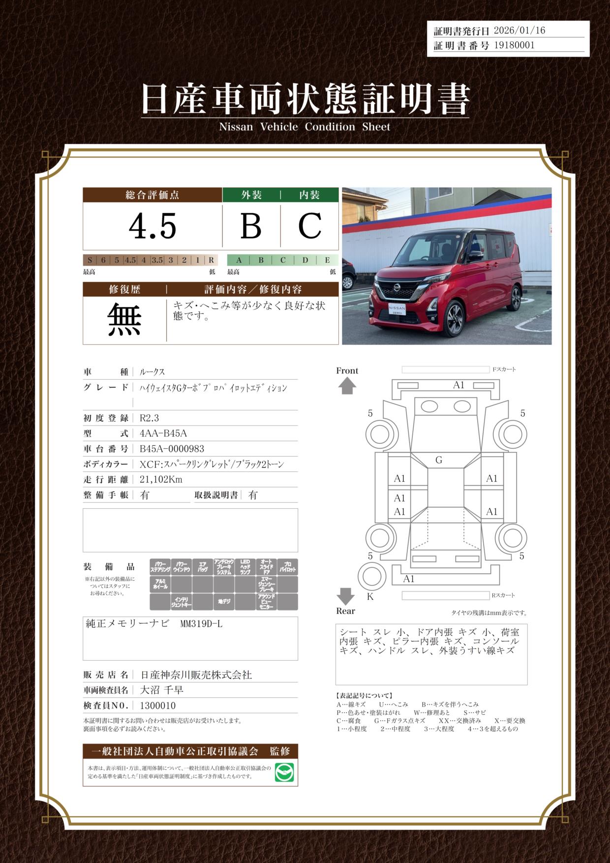 現状括弧書き内の年月まで車検有効期限が残っていますが、ご成約時に新しく車検を取り直します。なお取り直しの費用は車両価格に含まれています。