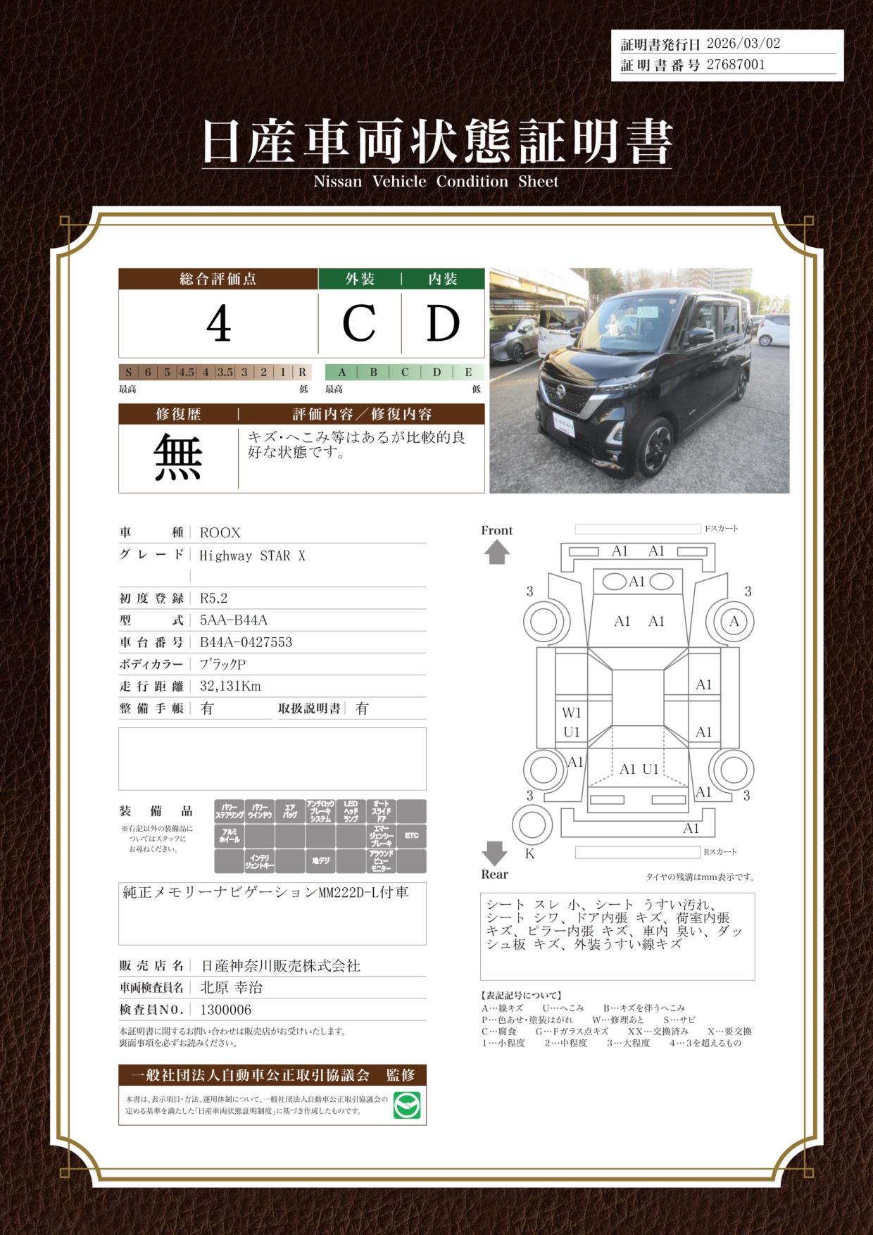 ◎お車の内外装の状態や、ご購入~納車までの流れ等、何でもご相談ください。【日産中古車ワイド保証】付帯。全国2,300以上の日産サービス工場で、保証・点検・車検/一般整備可能です