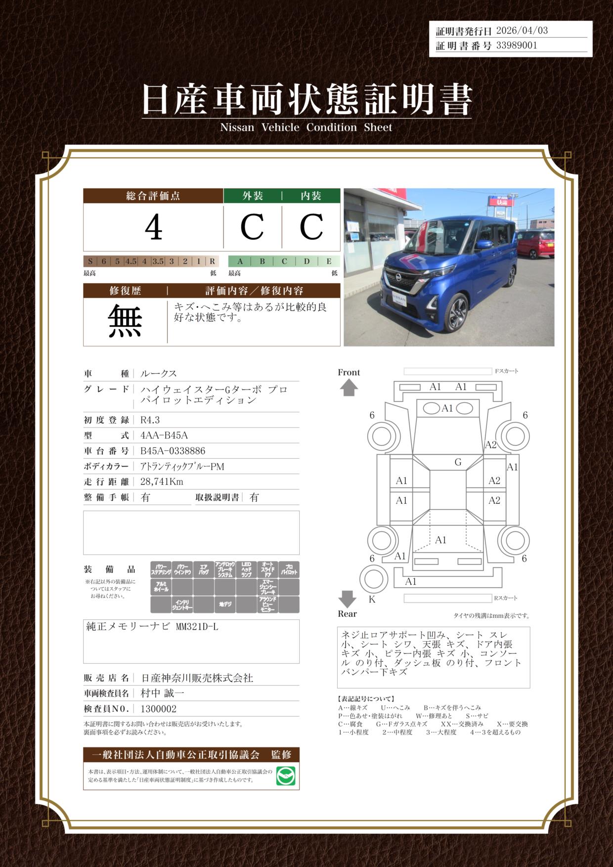 こちらのクルマは 「日産認定中古車」。 だから、4つの安心をお約束。
