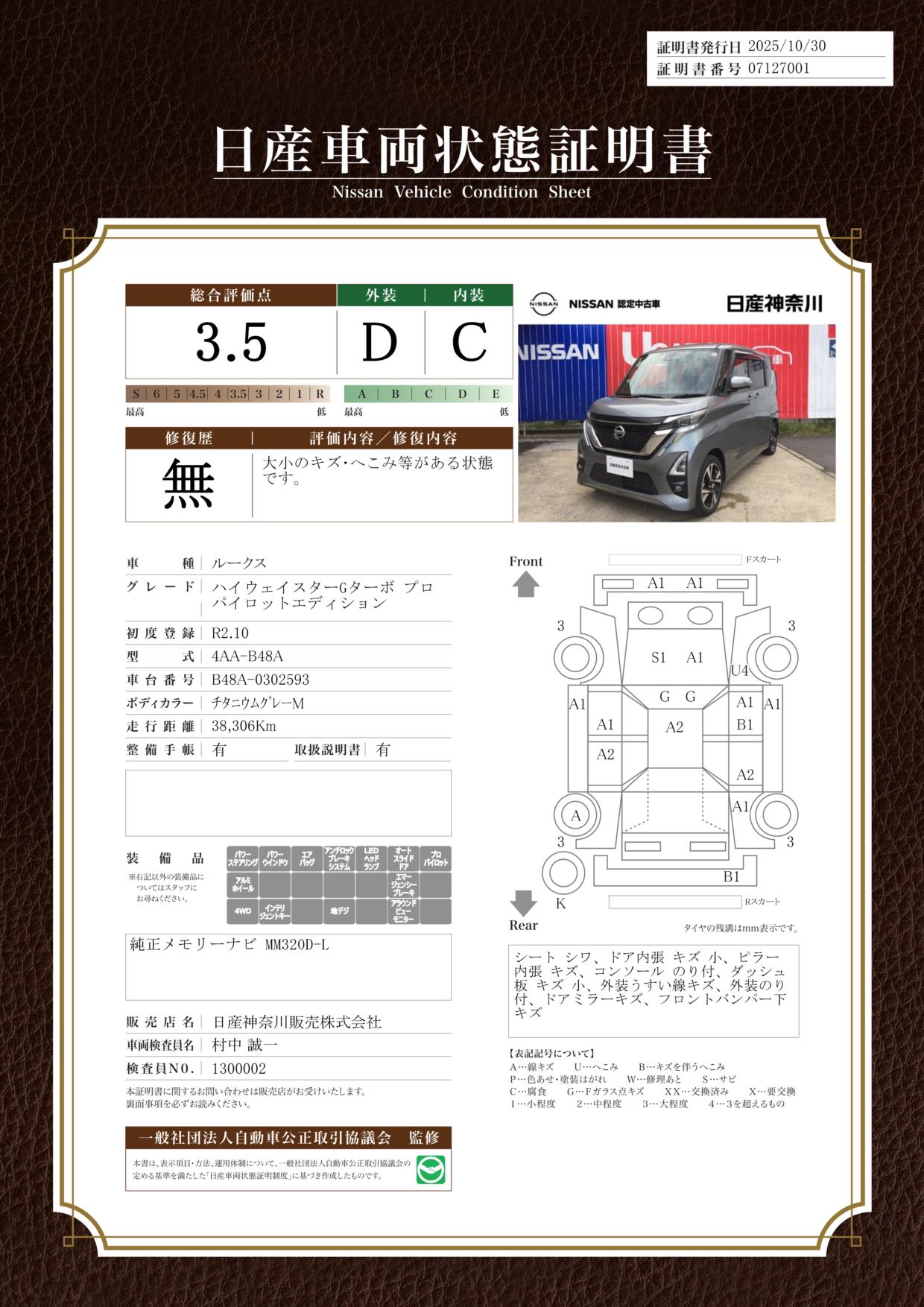 現状括弧書き内の年月まで車検有効期限が残っていますが、ご成約時に新しく車検を取り直します。なお取り直しの費用は車両価格に含まれています。
