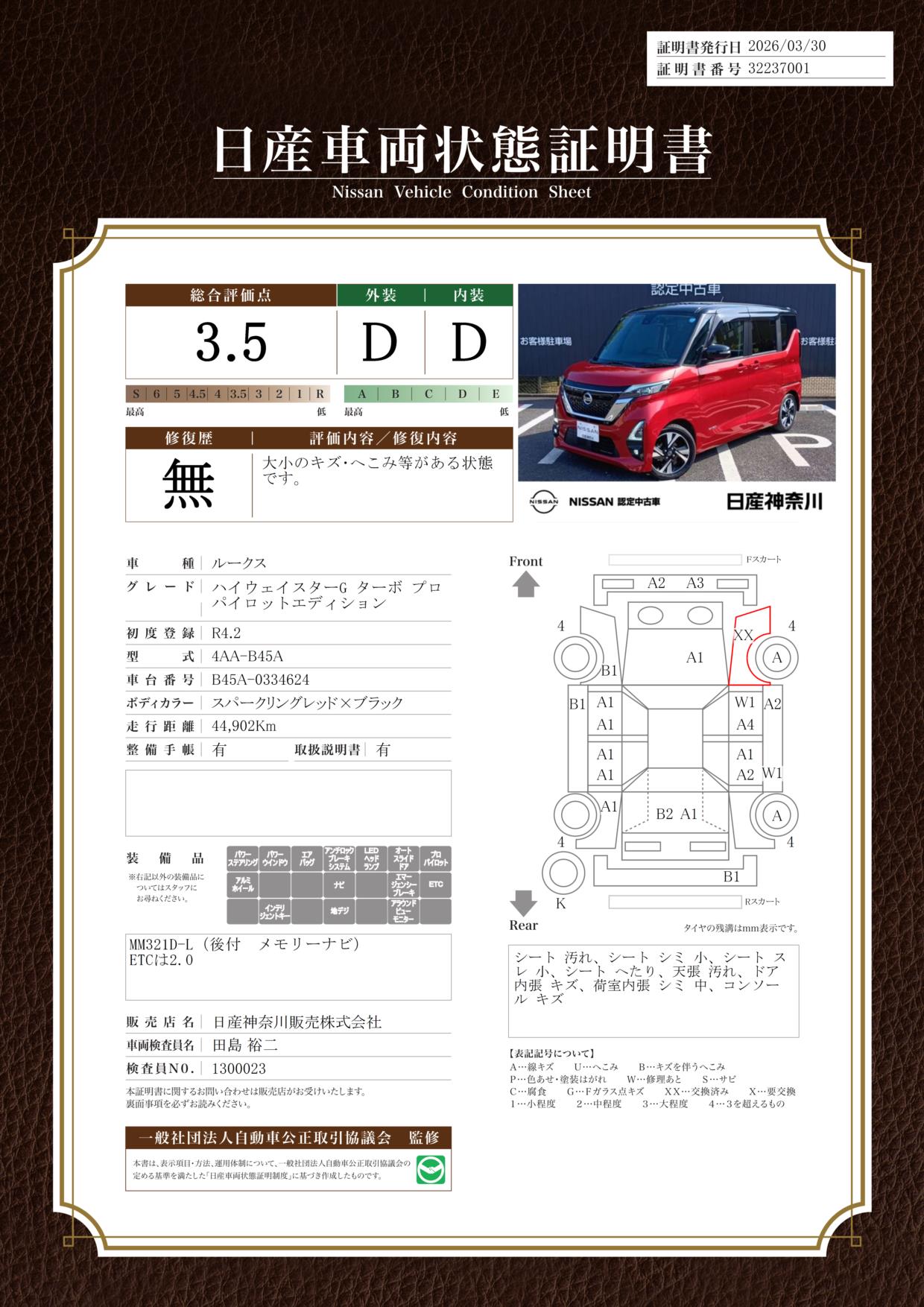 令和8年2月/法定12ヶ月点検整備実施車両。1オーナー弊社ユーザー様お下取車。メーカー特別保証(初度登録から5年/10万キロ)継承。全国の日産サービス工場でメンテナンス可能です。