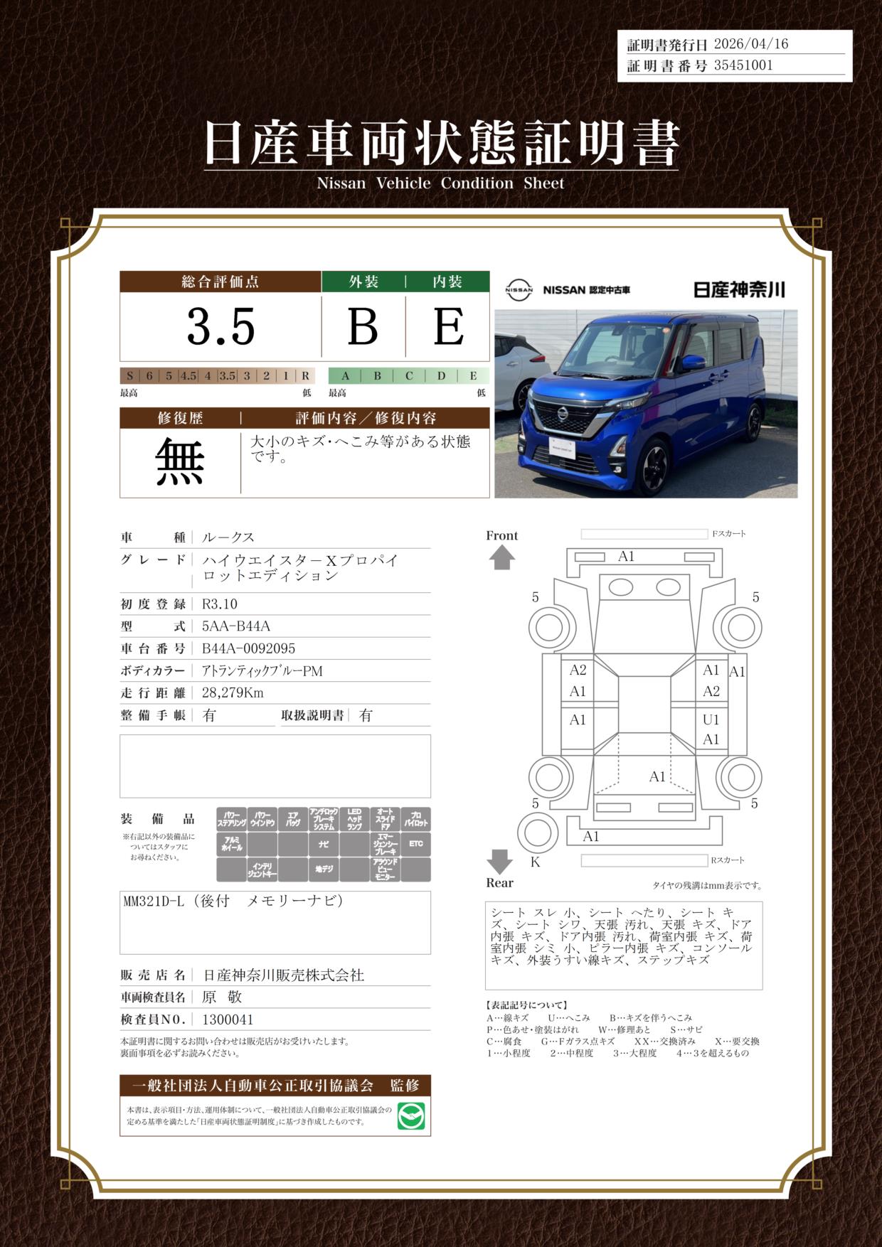 日産自動車認定の中古車販売店です。
