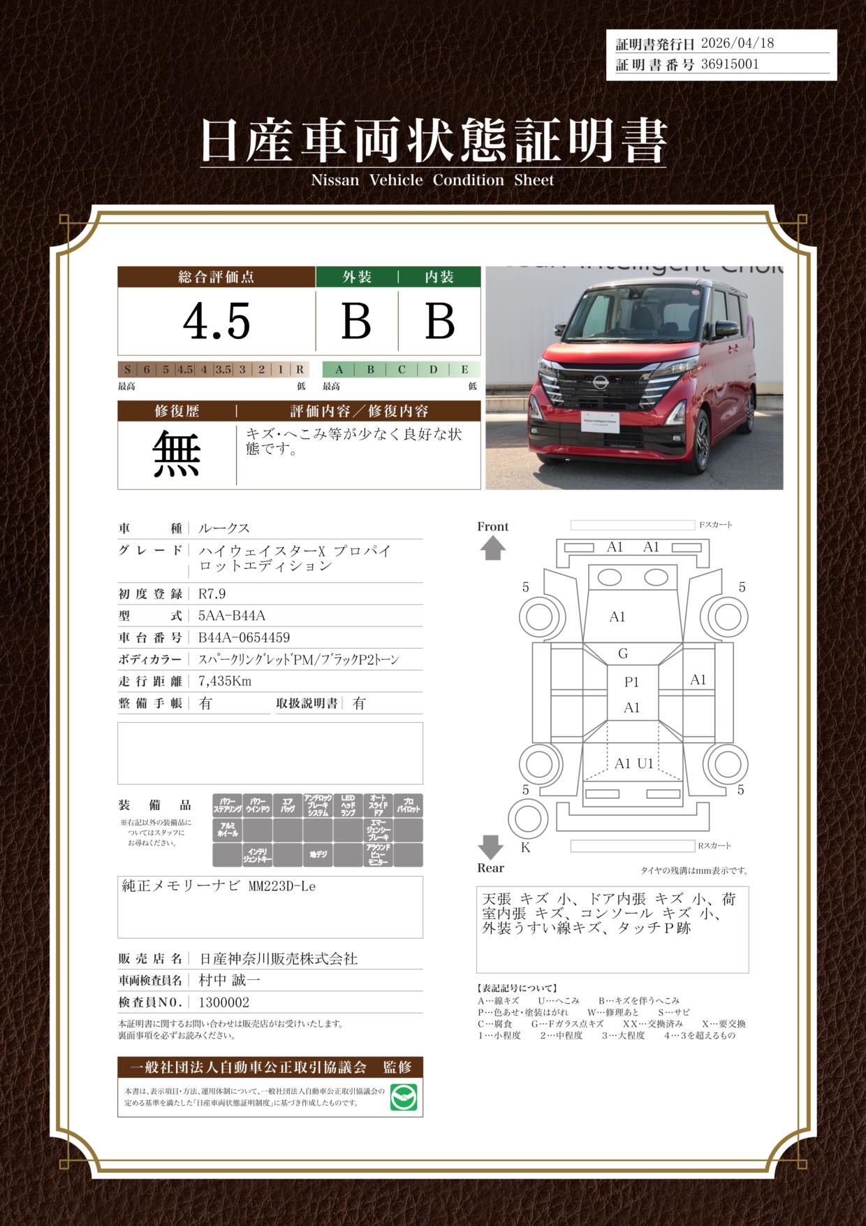 日産自動車認定の中古車販売店です。
