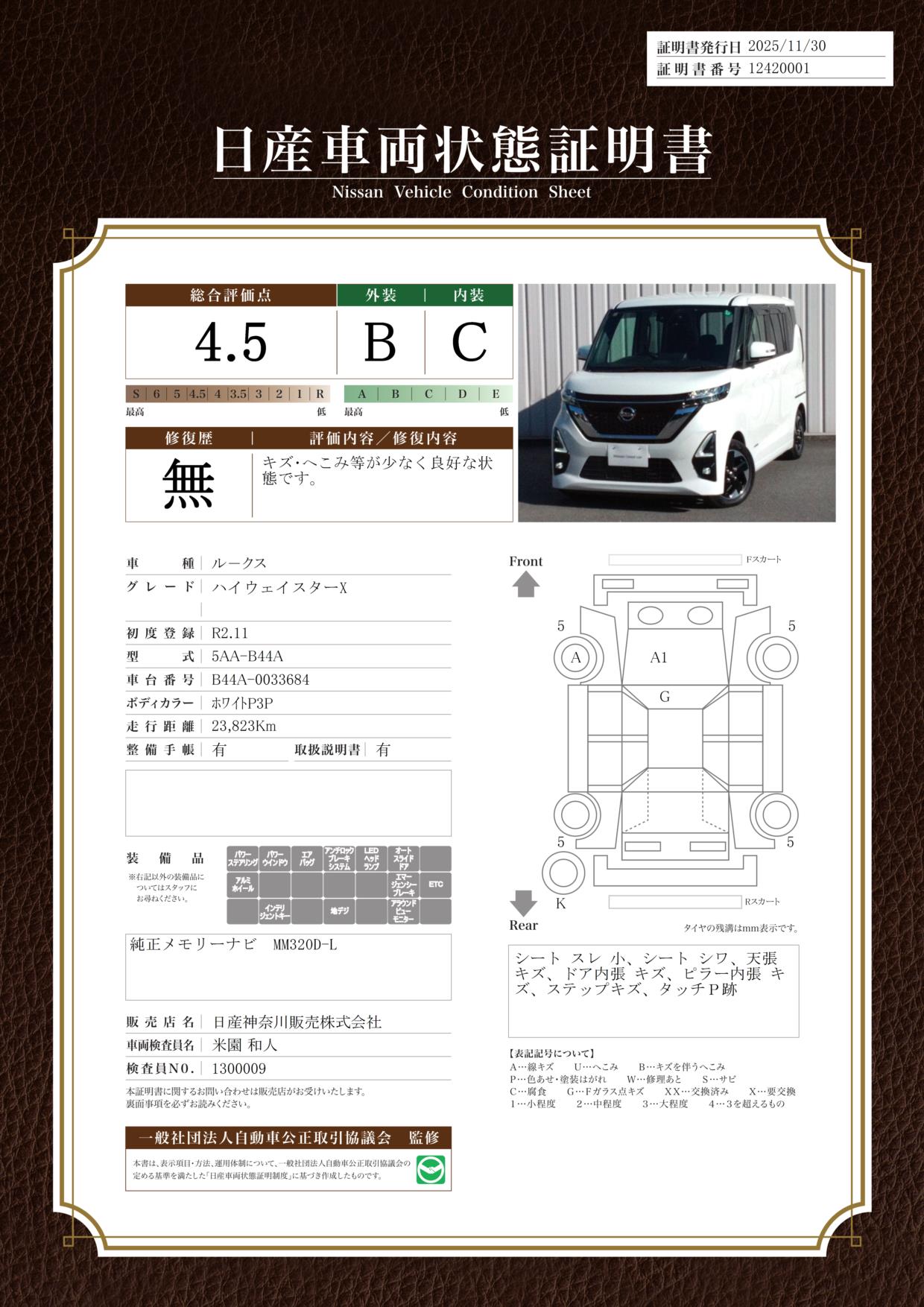 ルークス 660cc 660 ハイウェイスターX ナビ+AVM ETC 前後Dレコ LED A/W 1オーナー