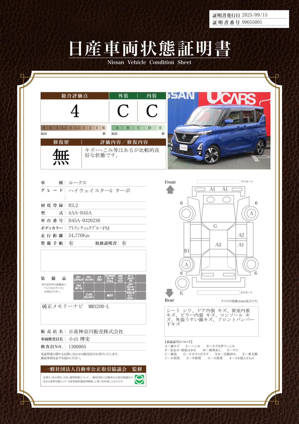 ルークス 660cc 660 ハイウェイスターGターボ プロパイロット エディション 試乗車MM223D-Lナビゲーション&アラウンド