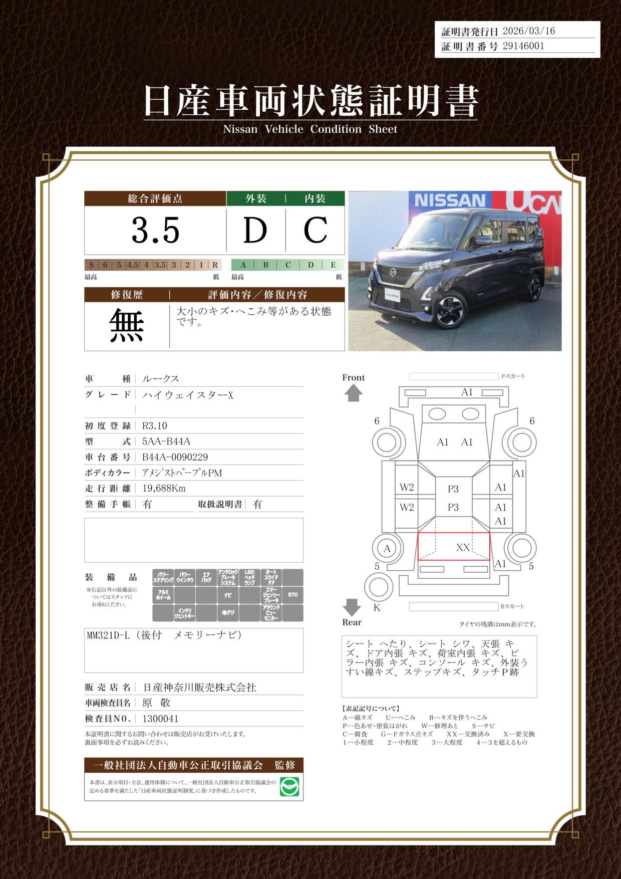 現状括弧書き内の年月まで車検有効期限が残っていますが、ご成約時に新しく車検を取り直します。なお取り直しの費用は車両価格に含まれています。