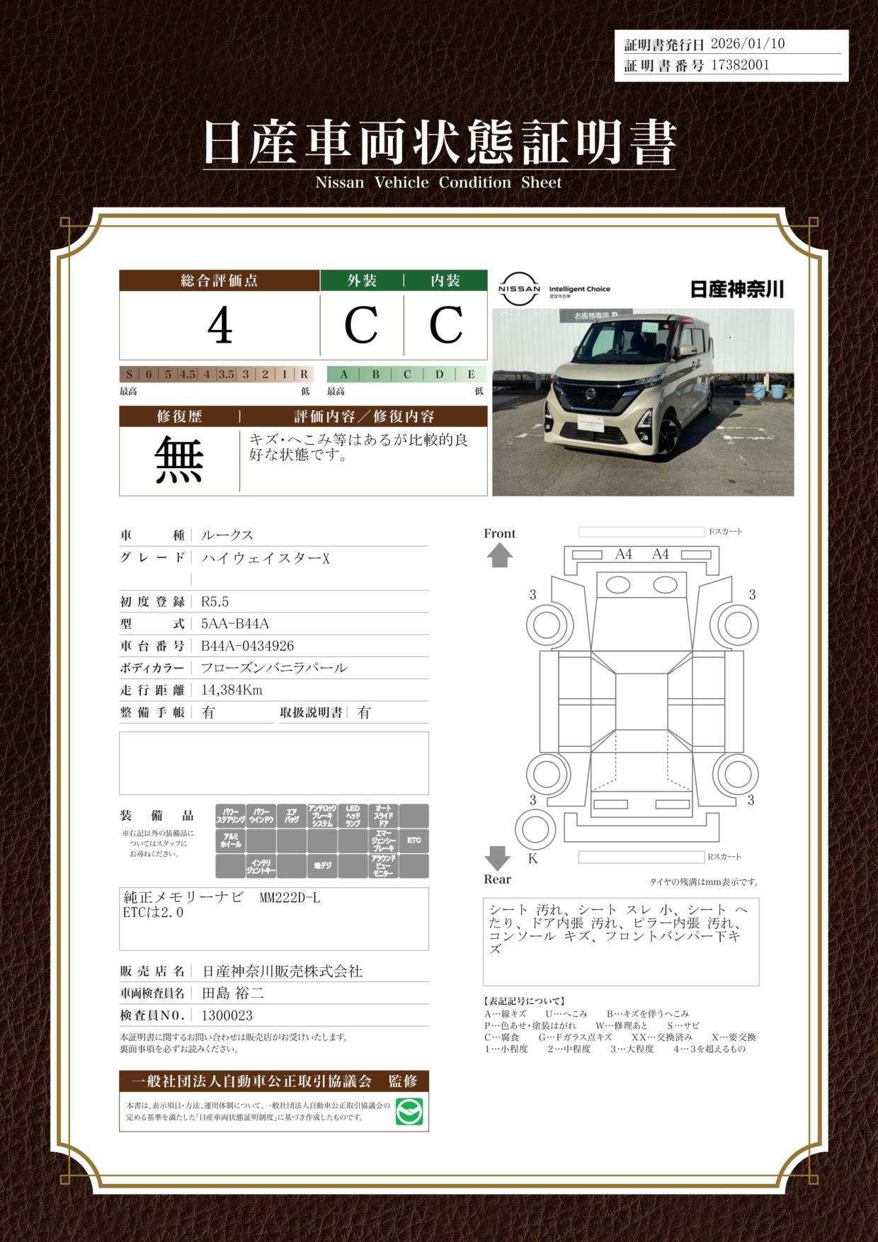 現状車検切れの状態ですが、ご成約時に新しく車検を実施します。車検費用は車両価格に含まれています。