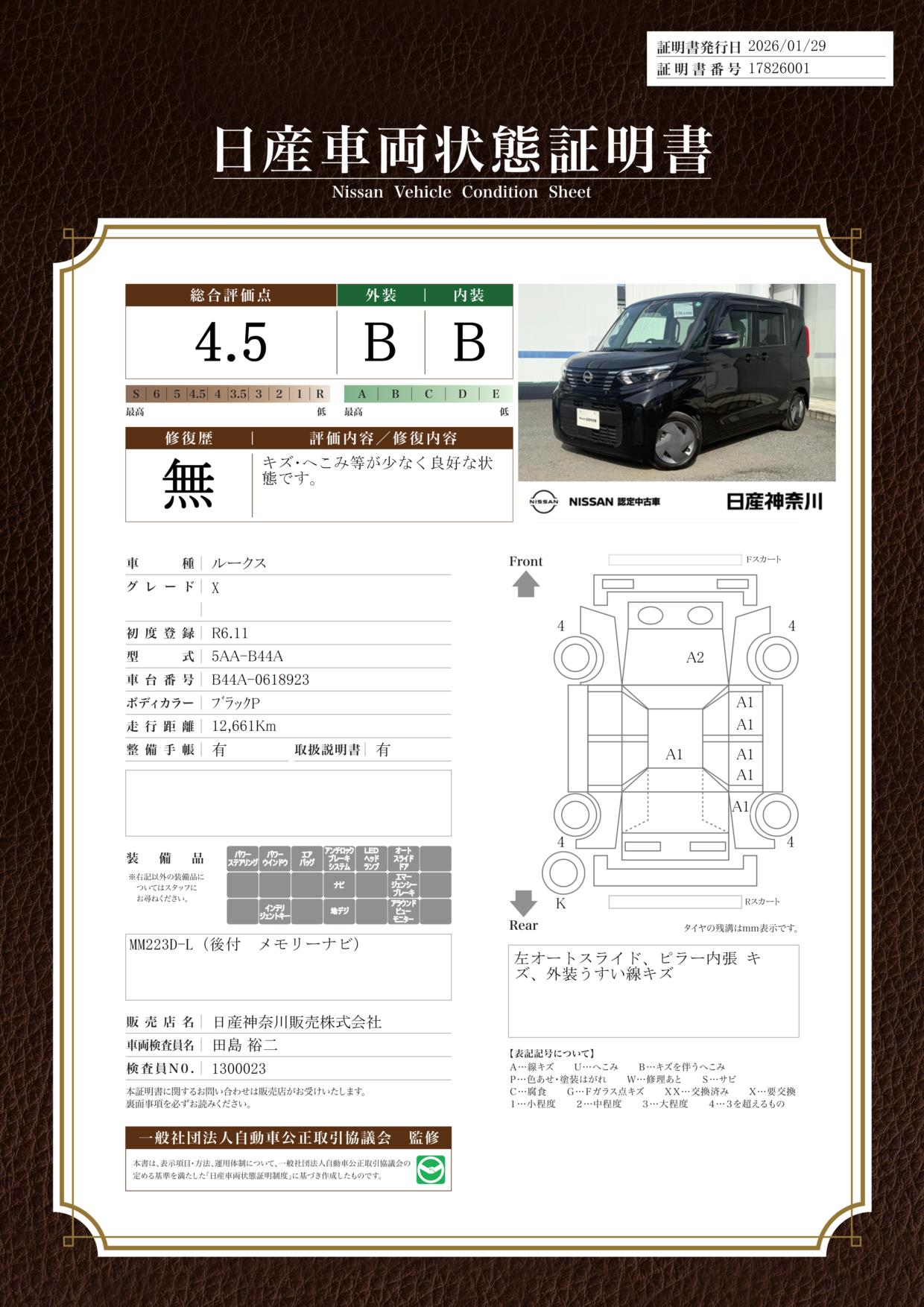 現状括弧書き内の年月まで車検有効期限が残っていますが、ご成約時に新しく車検を取り直します。なお取り直しの費用は車両価格に含まれています。