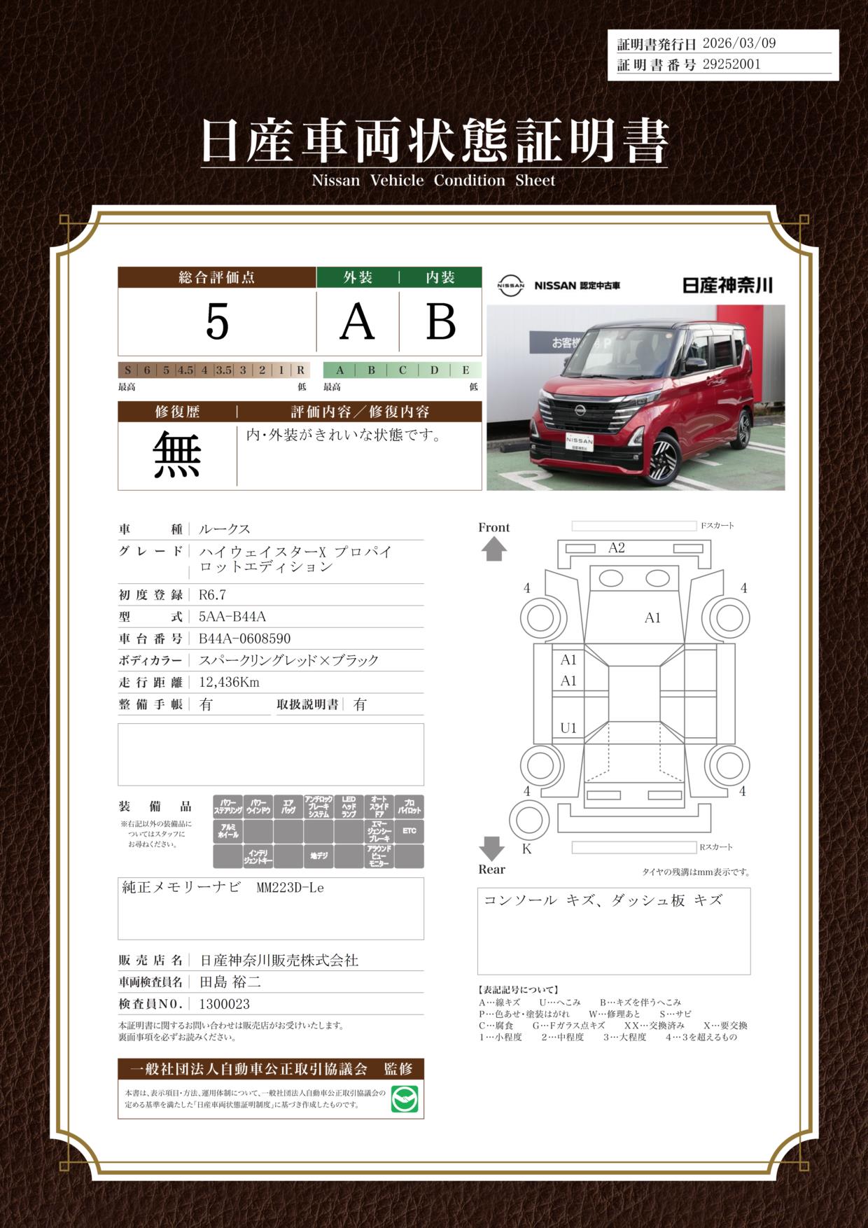 「車両状態証明書」は、査定協会監修のプロの検査員が公正かつ確かな基準で検査した”安心の証”です。