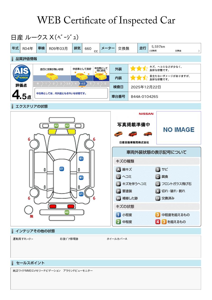 現状車検切れの状態ですが、ご成約時に新しく車検を実施します。車検費用は車両価格に含まれています。