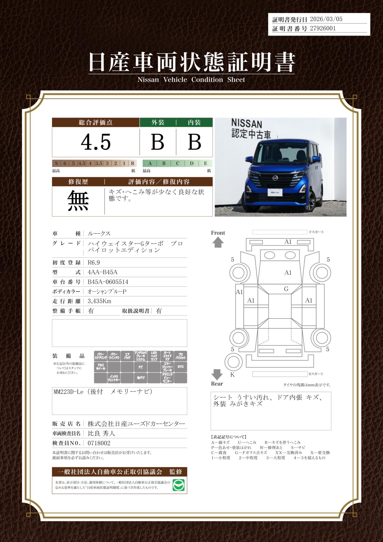 「車両状態証明書」は、査定協会監修のプロの検査員が公正かつ確かな基準で検査した”安心の証”です。