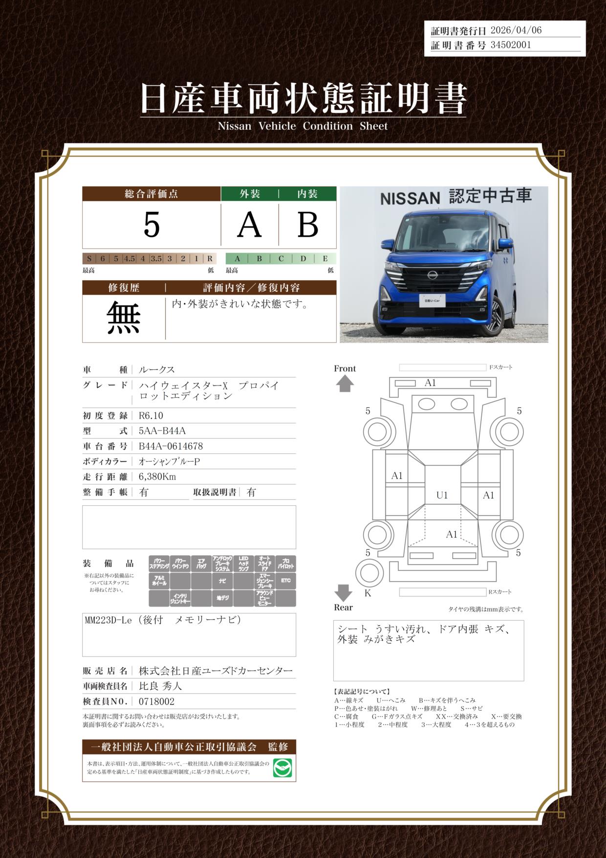「車両状態証明書」は、査定協会監修のプロの検査員が公正かつ確かな基準で検査した”安心の証”です。