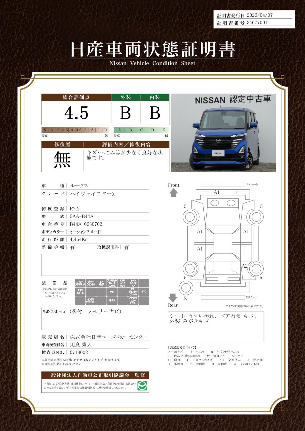 「車両状態証明書」は、査定協会監修のプロの検査員が公正かつ確かな基準で検査した”安心の証”です。