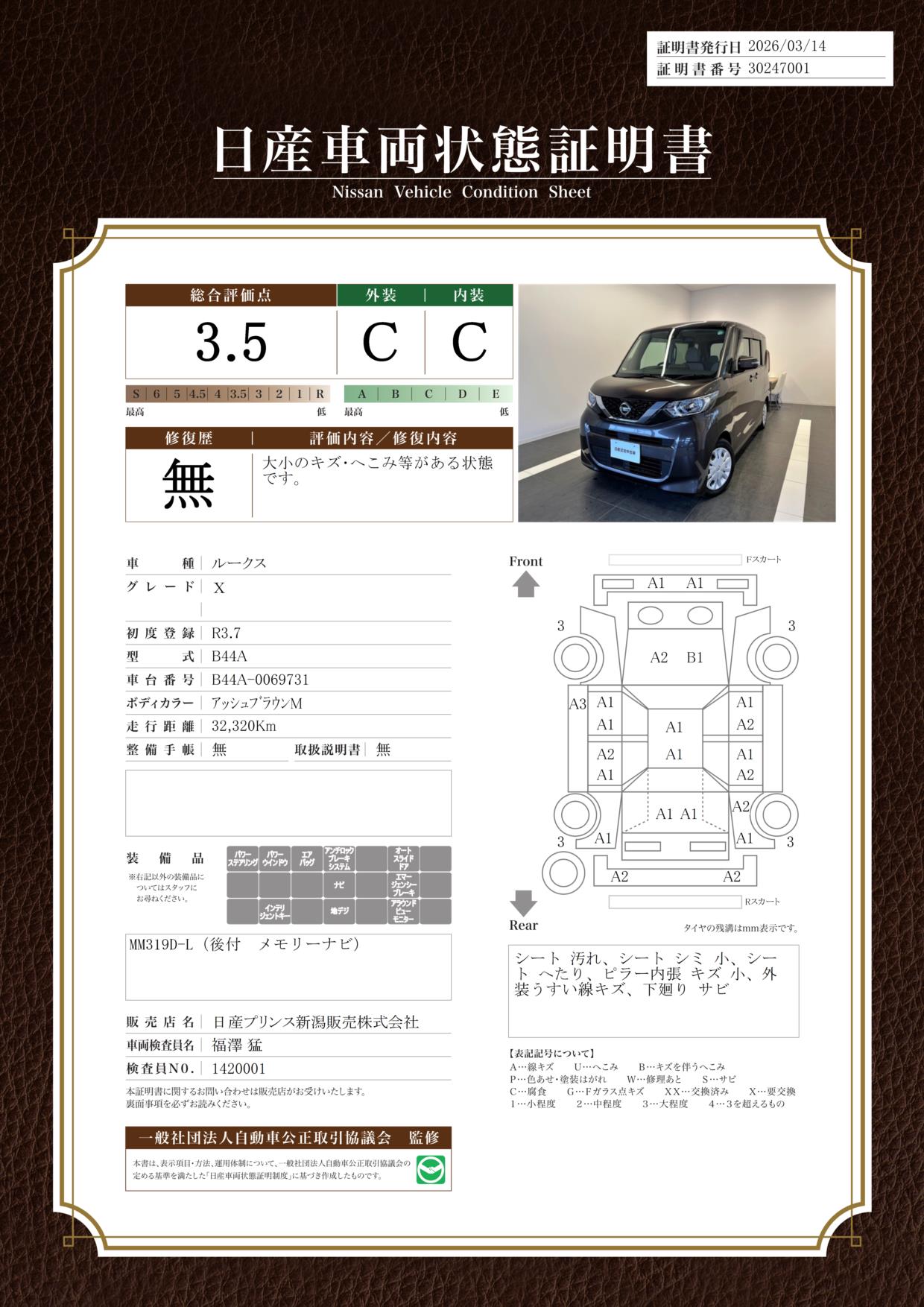 日産車両状態証明