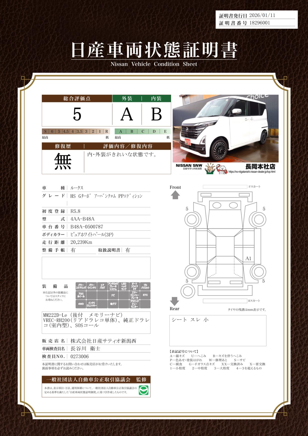 評価機関 : 日産車両状態証明
