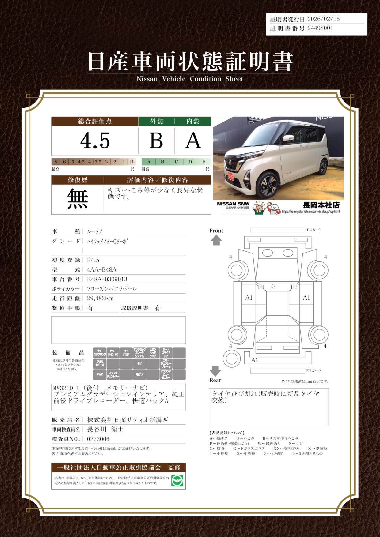 ☆納車後1ヶ月または1000km走行時の無料点検付き☆長岡本社店にて展示中☆任せて安心!ディーラー保証!事前チェックと納車前点検整備もバッチリです!