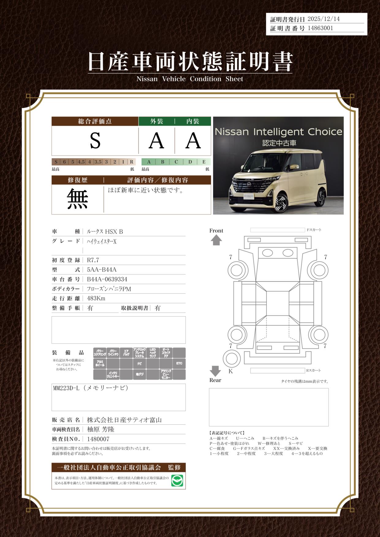ルークス 660cc 660 ハイウェイスターX 当社社有車