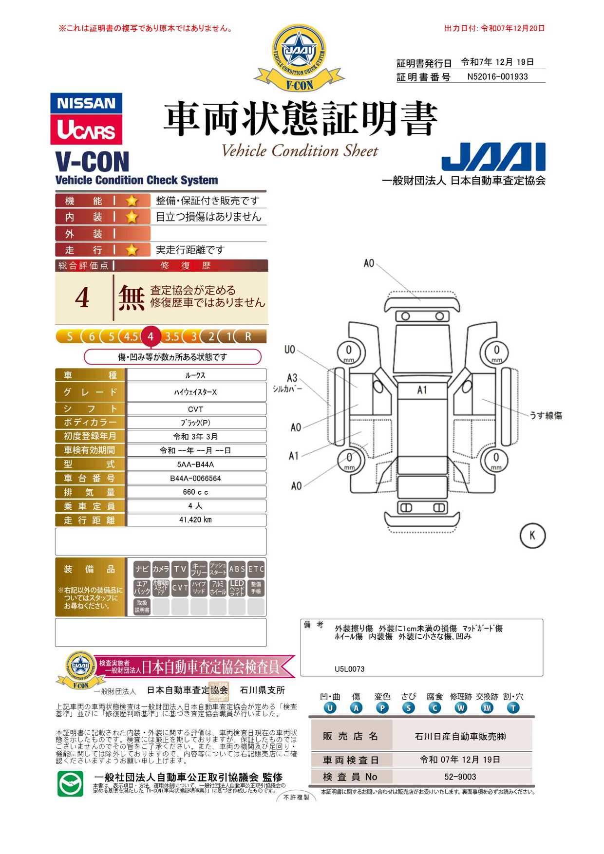 この度は石川日産UCARS小松の在庫を検索して頂き誠に有難う御座います。急速充電を備えておりますので電気自動車をご検討のお客様は一度、ご来店頂ければ充電方法を体験出来ます。当店では全国各地に販売実績がございますので、県内・県外問わず気になるお車があればお気軽にお問い合わせください。 ディーラーリースを始めました!個人様、法人様どなたでも大歓迎です。ぜひお気軽にお声掛けください! https://u-sub.nissan.co.jp/ ← こちらはリース車両専用サイトです♪