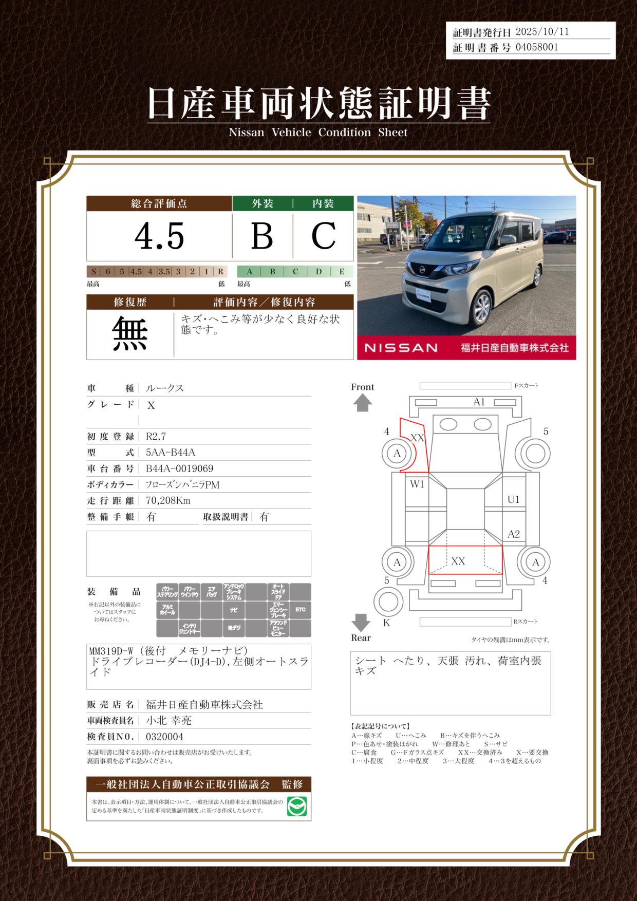ルークス 660cc 660 X メモリーナビ・快適パック・アラウンドビュ