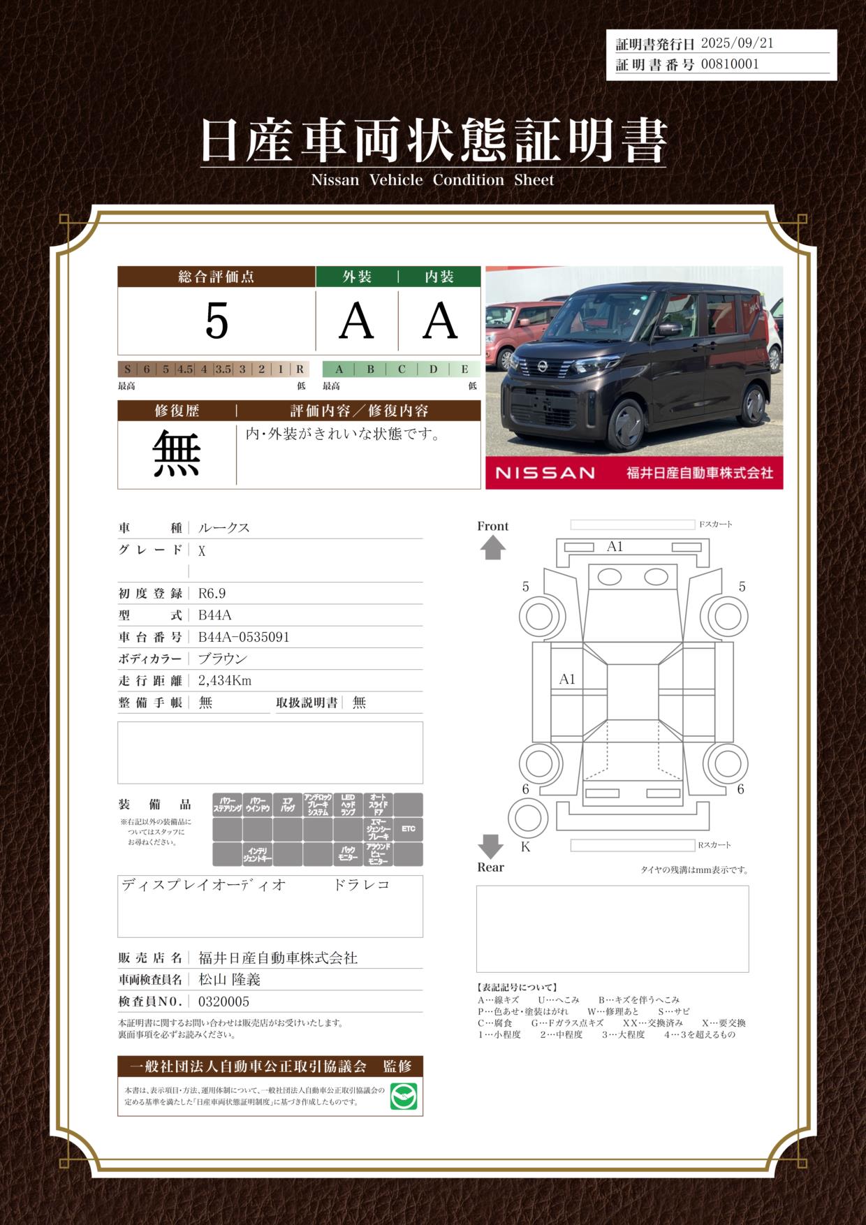 評価機関 : 日産車両状態証明