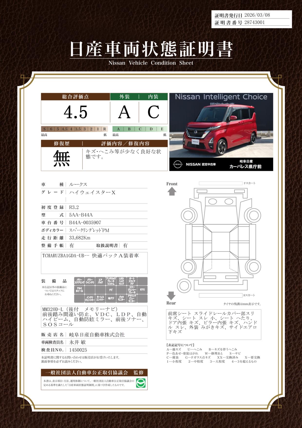 現状括弧書き内の年月まで車検有効期限が残っていますが、ご成約時に新しく車検を取り直します。なお取り直しの費用は車両価格に含まれています。