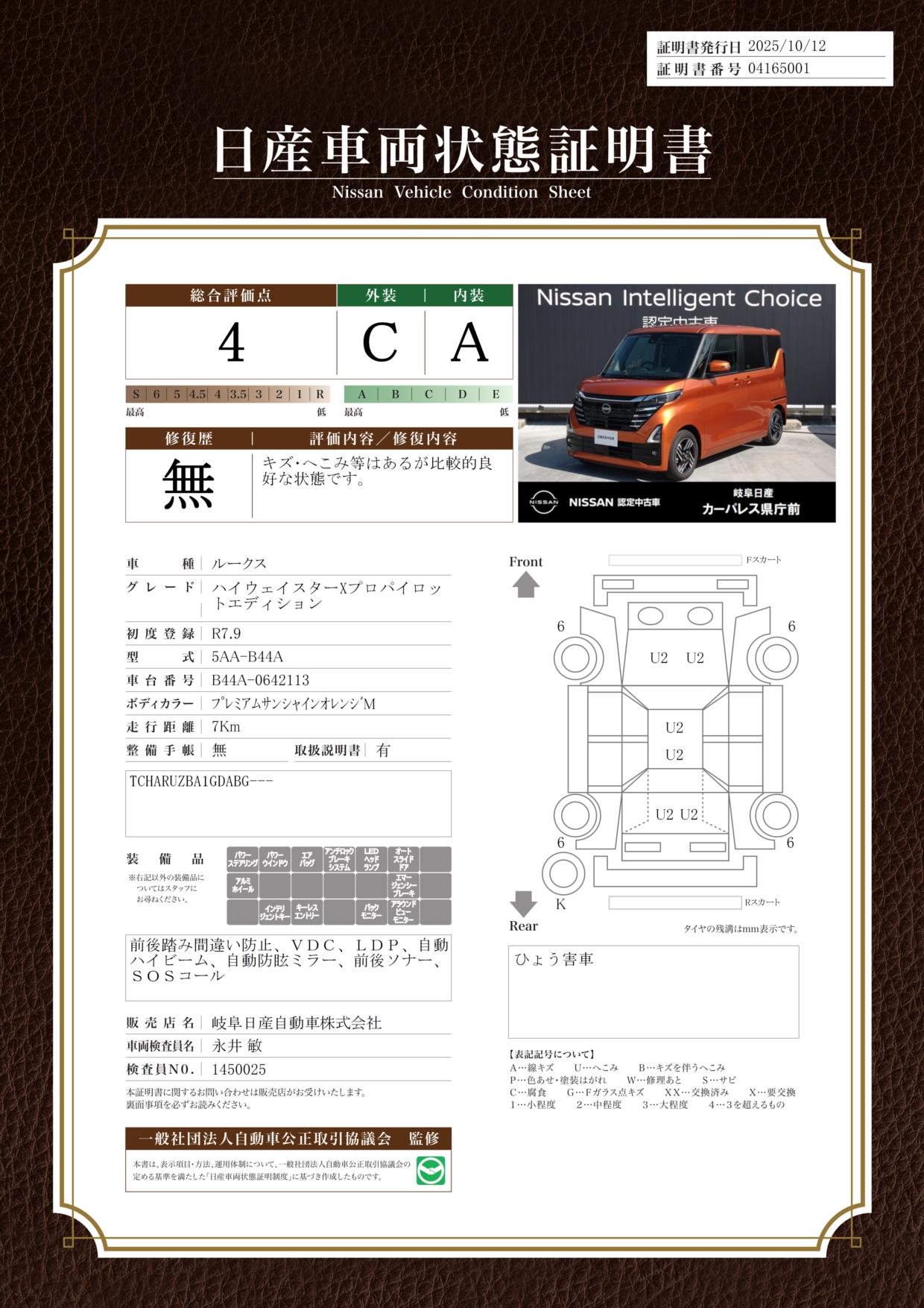 こちらの車両はひょう害車となります。誠に勝手ながら岐阜県在住のご来店いただけるお客様に限り、販売させていただきます。