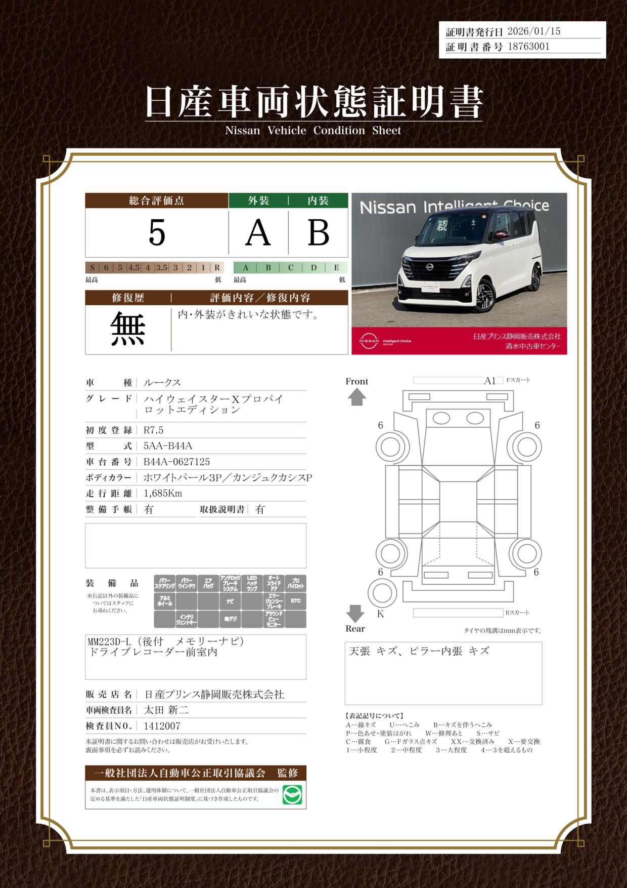 ルークス 660cc 660 X ドラレコ・アラウンドビューモニター・メモ