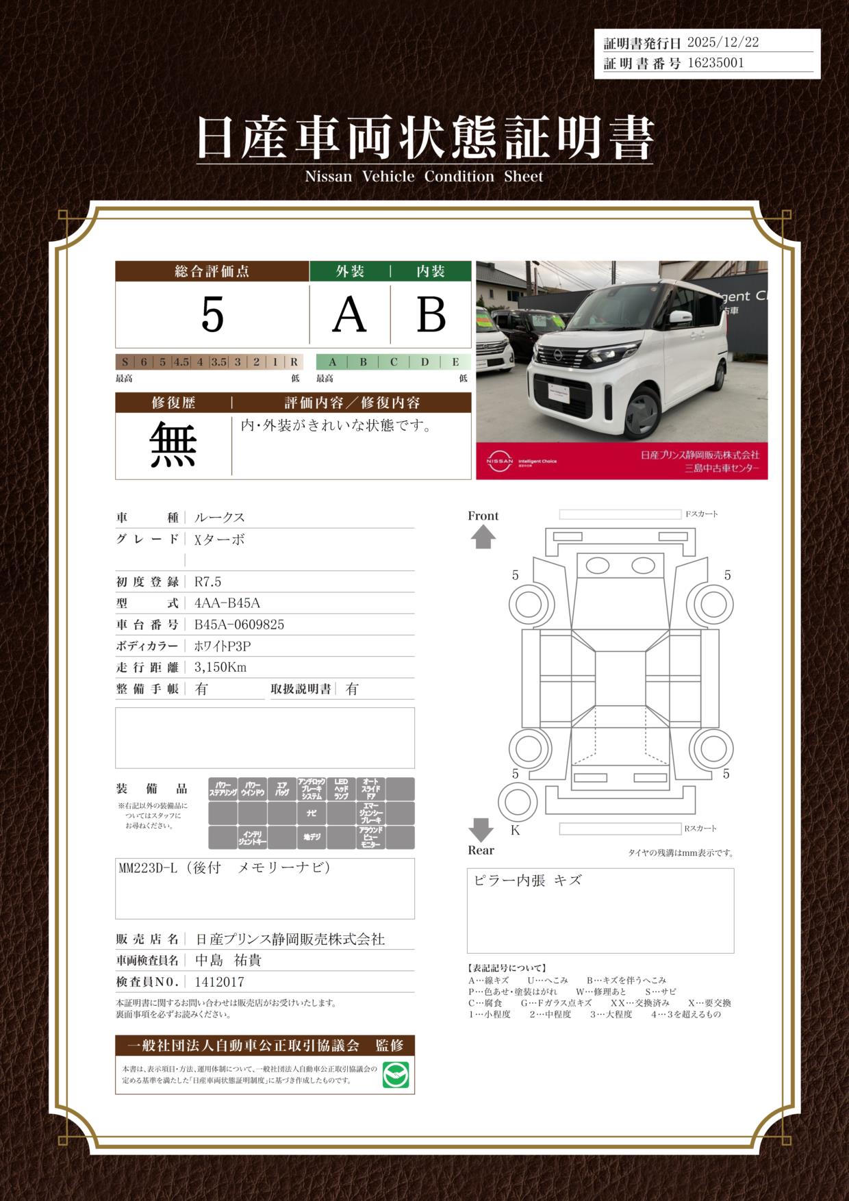 現状括弧書き内の年月まで車検有効期限が残っていますが、ご成約時に新しく車検を取り直します。なお取り直しの費用は車両価格に含まれています。