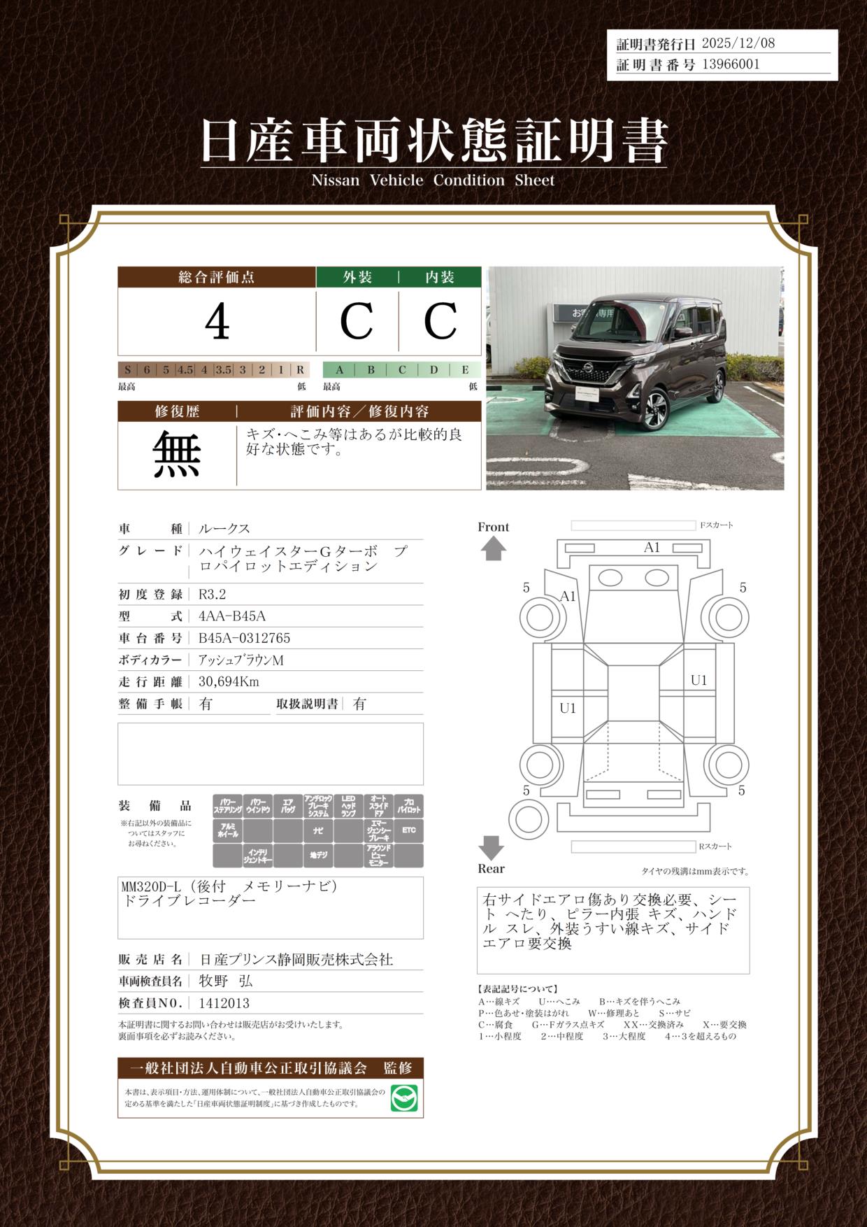 ルークス 660cc 660 ハイウェイスターX プロパイロット エディション ドラレコ・アラウンドビューモニター・メモ