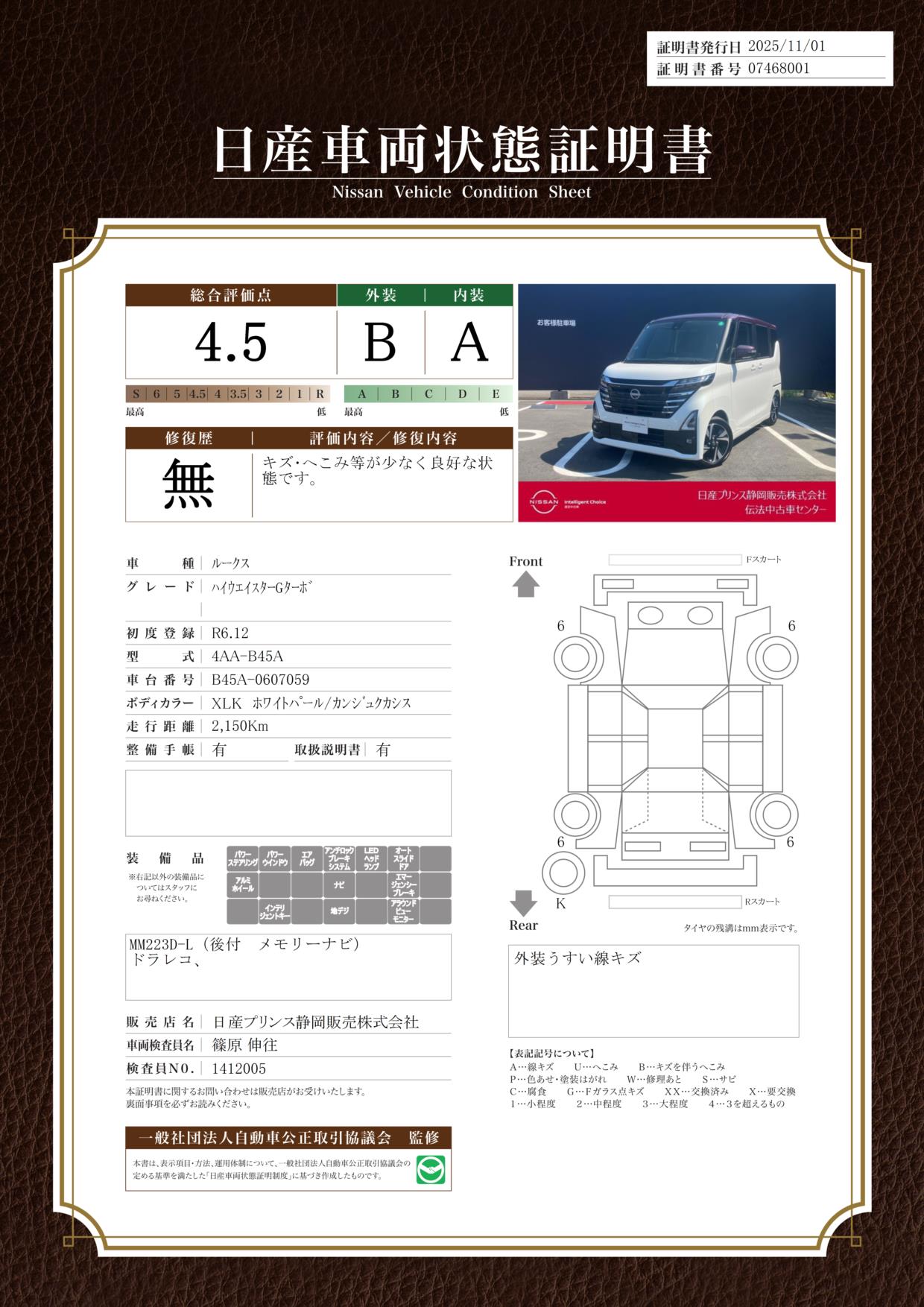 ルークス 660cc 660 X ドラレコ・アラウンドビューモニター・メモ