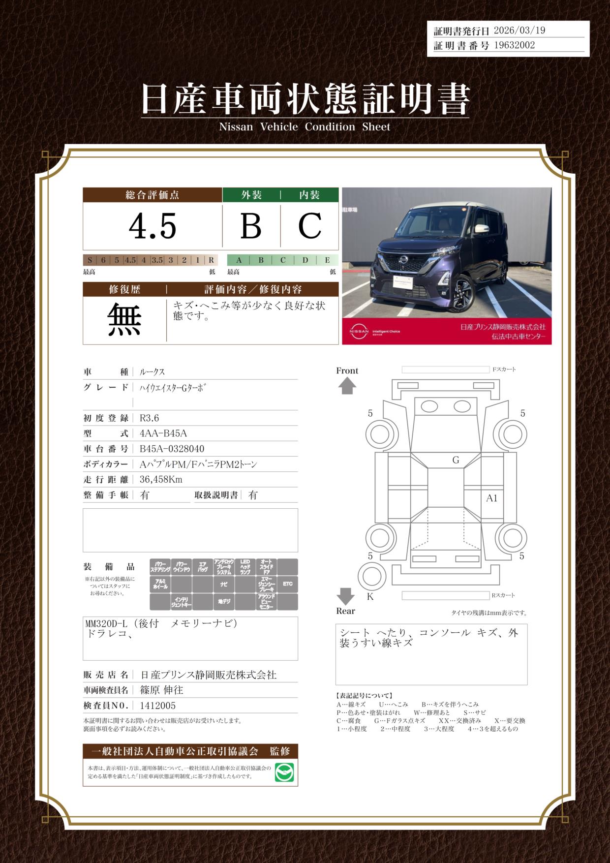 日産車両状態証明