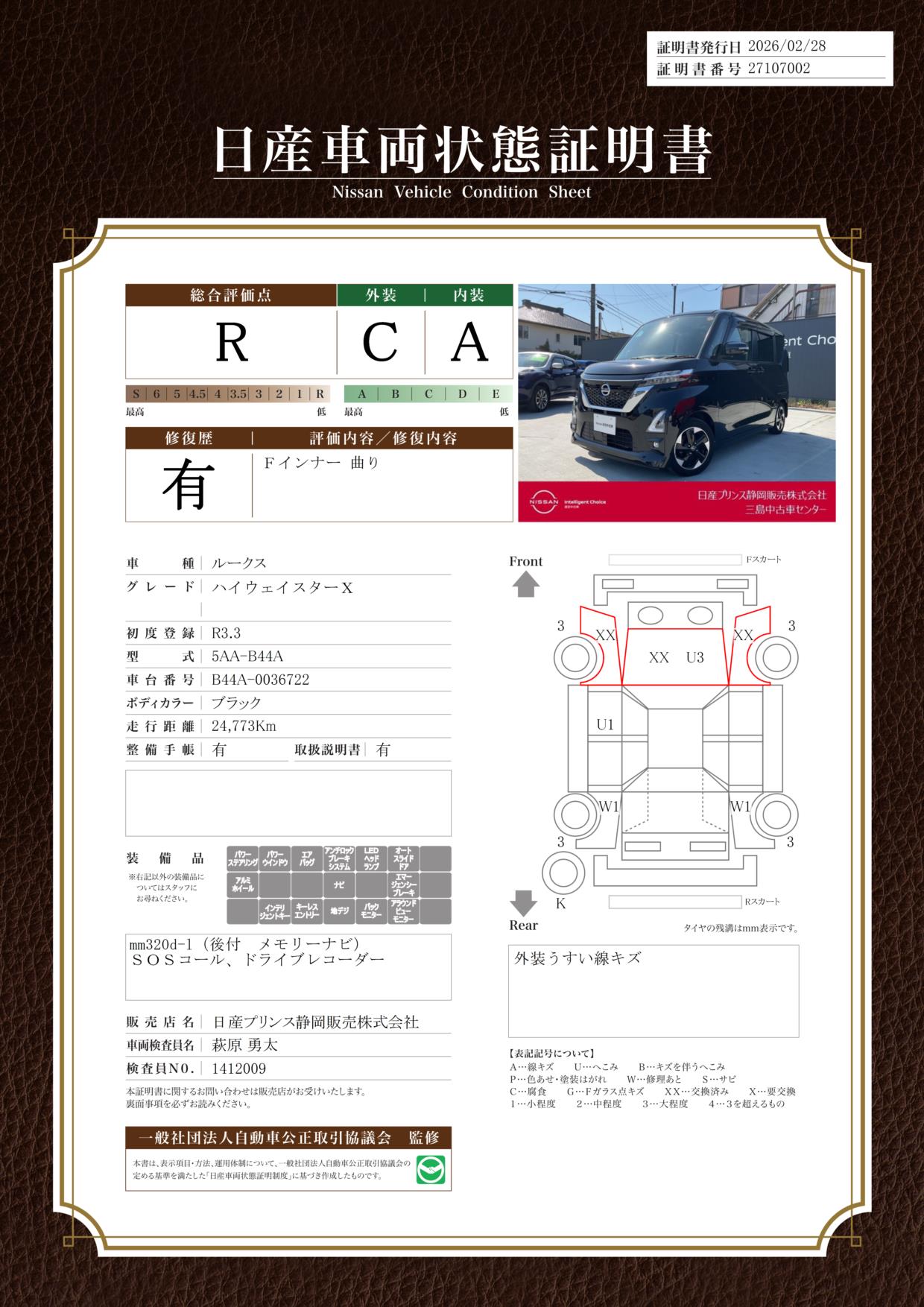 現状括弧書き内の年月まで車検有効期限が残っていますが、ご成約時に新しく車検を取り直します。なお取り直しの費用は車両価格に含まれています。