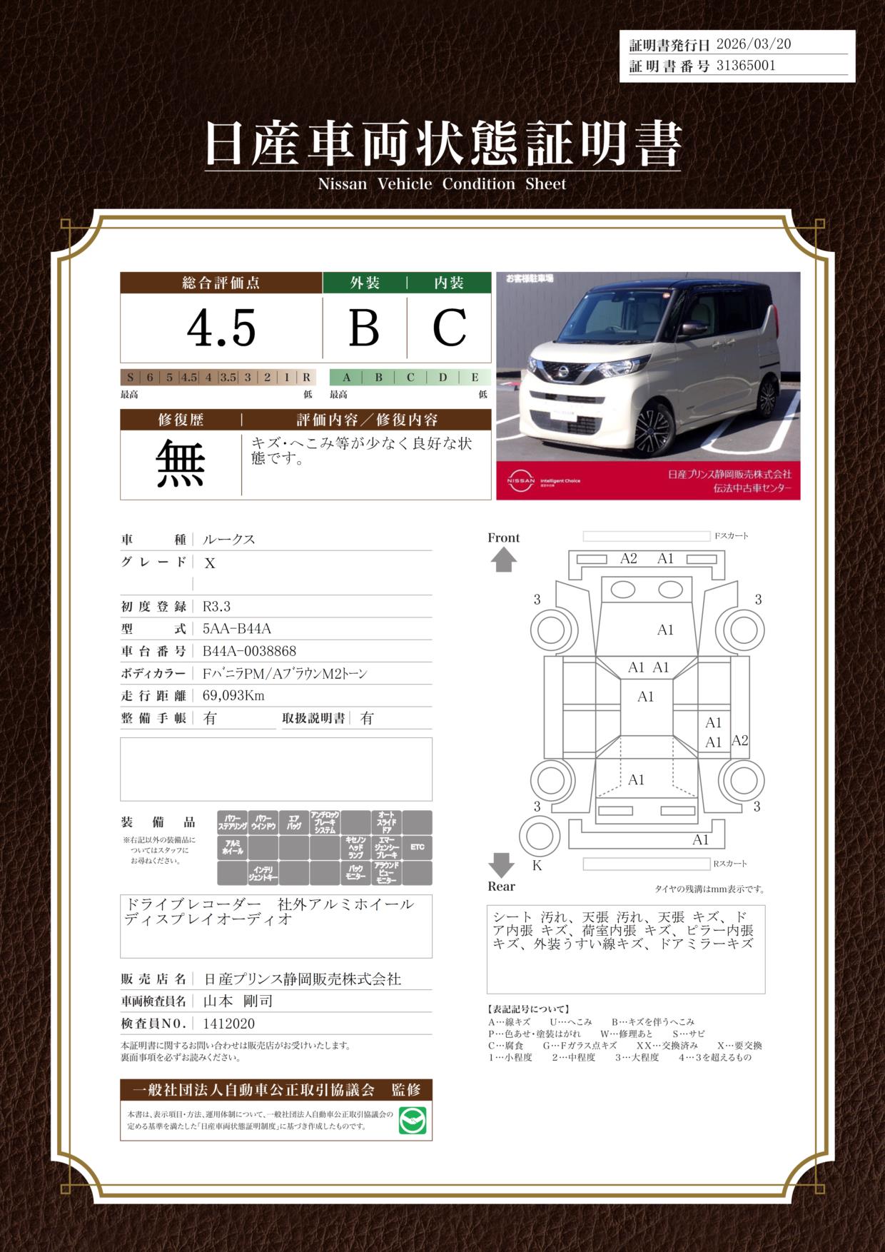 現状括弧書き内の年月まで車検有効期限が残っていますが、ご成約時に新しく車検を取り直します。なお取り直しの費用は車両価格に含まれています。