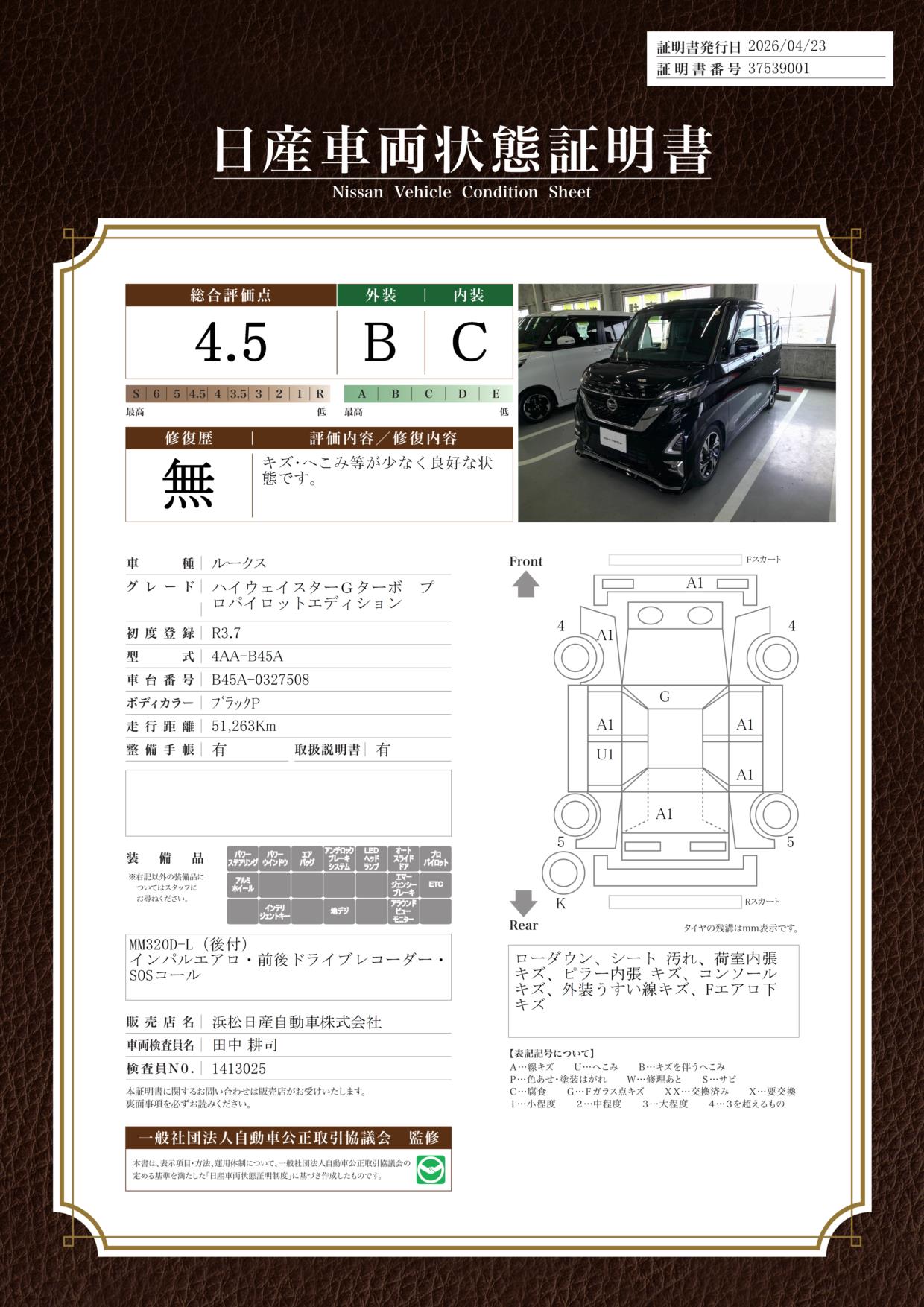 現状括弧書き内の年月まで車検有効期限が残っていますが、ご成約時に新しく車検を取り直します。なお取り直しの費用は車両価格に含まれています。