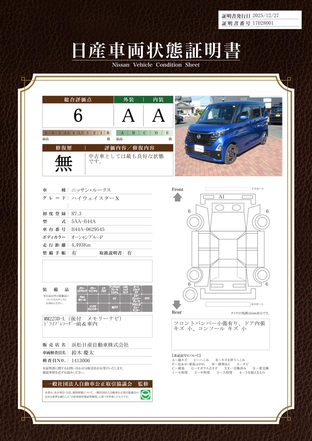 ルークス 660cc 660 X 純正ナビ ドラレコ ETC全周囲カメラ