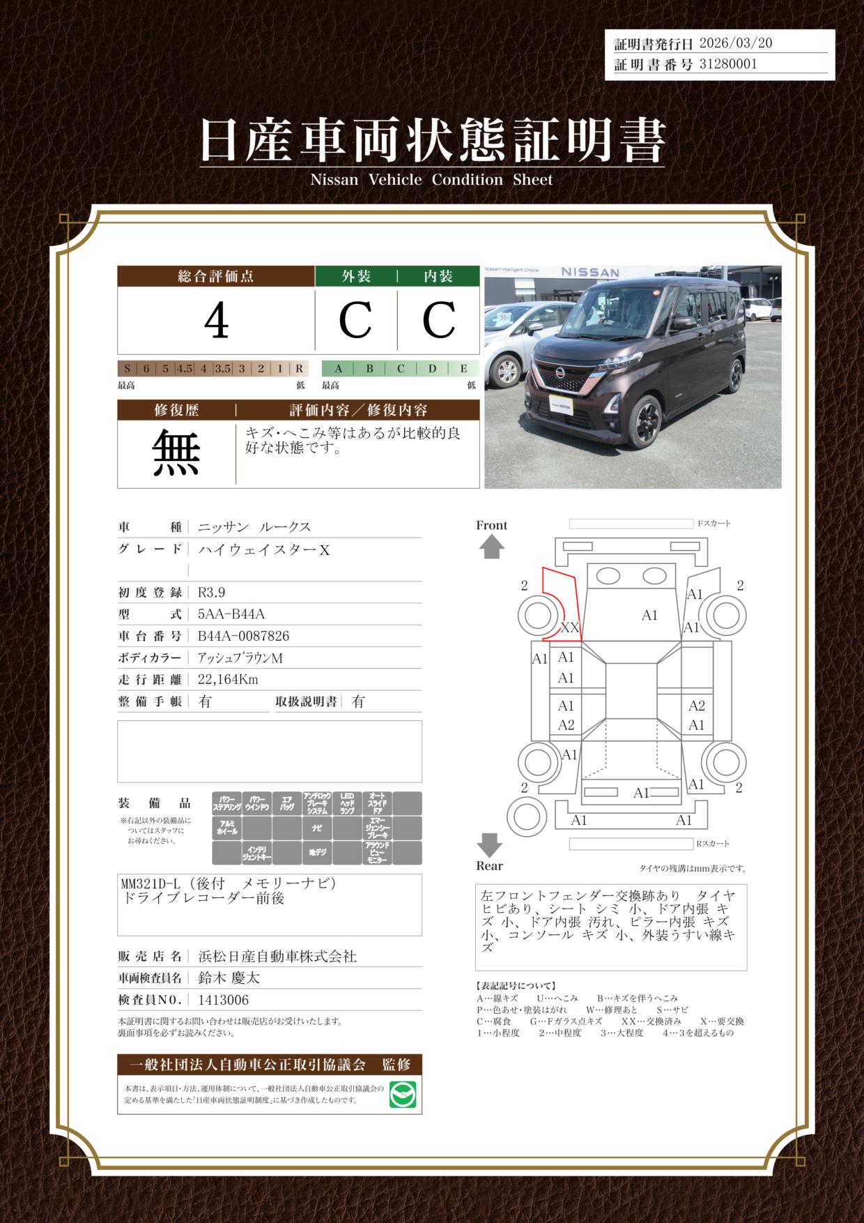 日産車両状態証明
