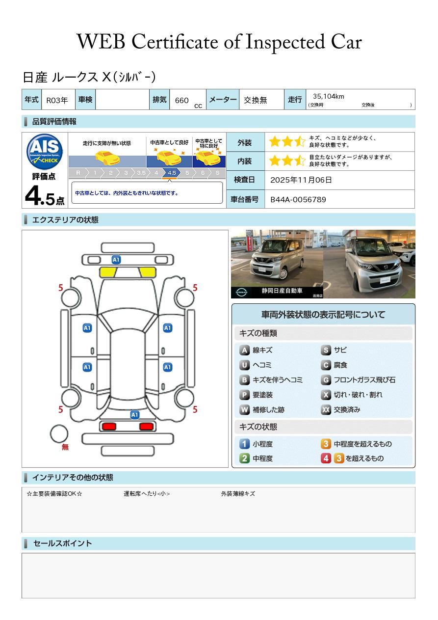 ルークス 660cc 660 X アラウンドビューモニター 後席両側オート
