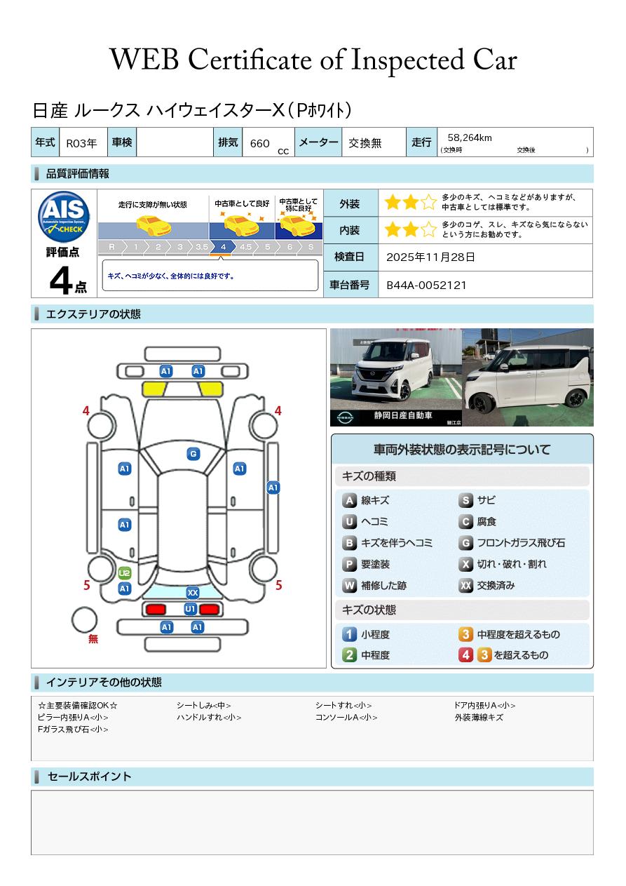 ルークス 660cc 660 X アラウンドビューモニター 後席両側オート