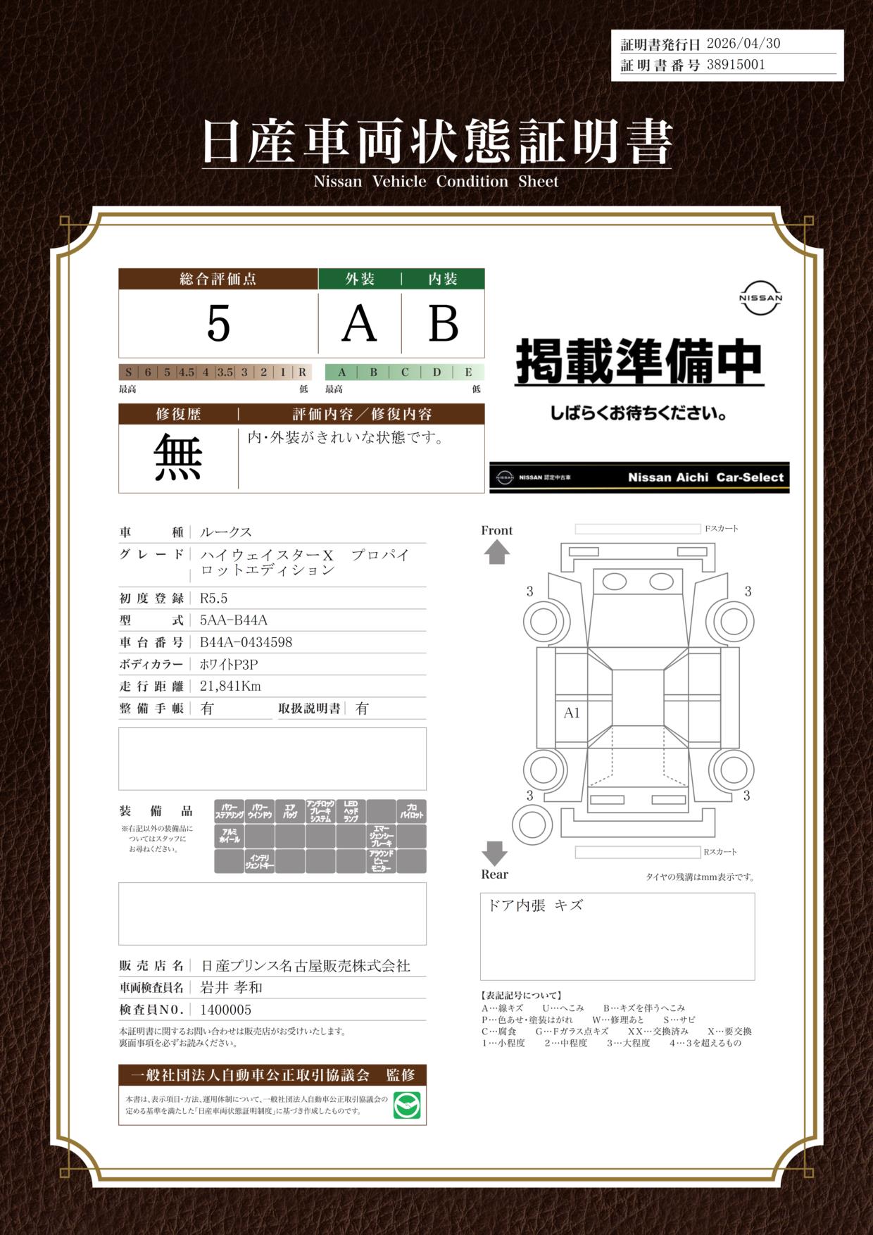 「車両状態証明書」は、査定協会監修のプロの検査員が公正かつ確かな基準で検査した”安心の証”です。