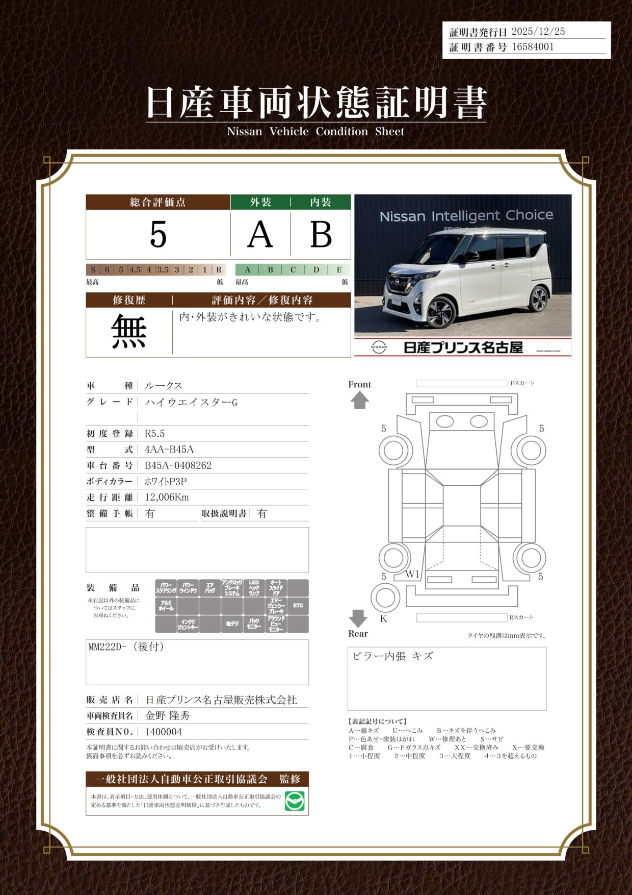 現状括弧書き内の年月まで車検有効期限が残っていますが、ご成約時に新しく車検を取り直します。なお取り直しの費用は車両価格に含まれています。