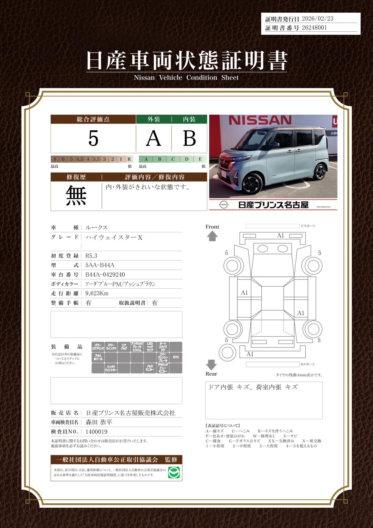 現状括弧書き内の年月まで車検有効期限が残っていますが、ご成約時に新しく車検を取り直します。なお取り直しの費用は車両価格に含まれています。