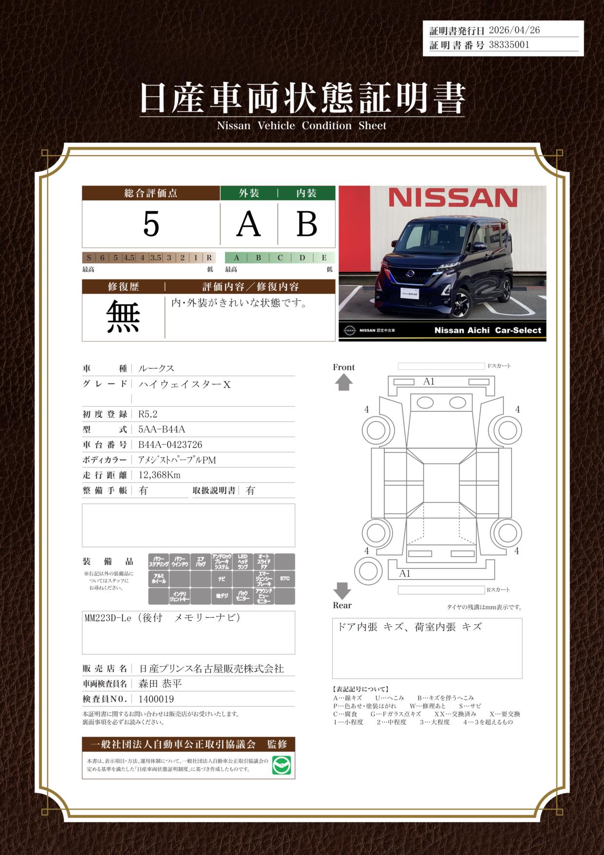 「車両状態証明書」は、査定協会監修のプロの検査員が公正かつ確かな基準で検査した”安心の証”です。
